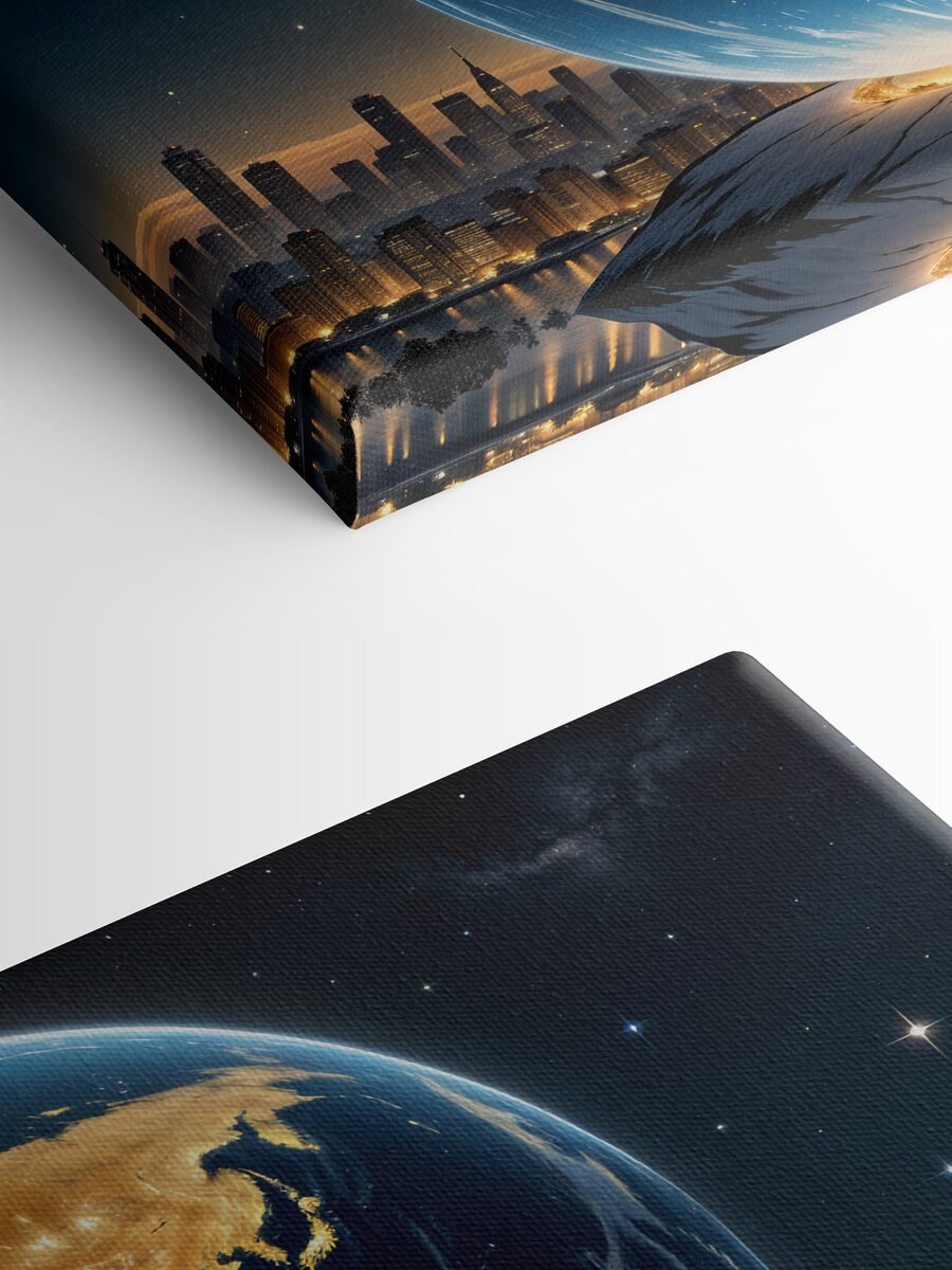 Bekijk deze canvasafdruk, “Canvas Schilderijen s40178”, het is een echte showstopper! Stel je voor dat je een levendig stukje van het universum aan je muur hebt hangen, waardoor je ruimte direct een andere uitstraling krijgt. Met gedetailleerde stadsgezichten en een prachtige wereldkaart is dit stuk als een venster naar een dromerig, kosmisch avontuur. De kleuren zijn zo levendig dat het bijna lijkt alsof de sterren fonkelen in je woonkamer – hoe cool is dat?