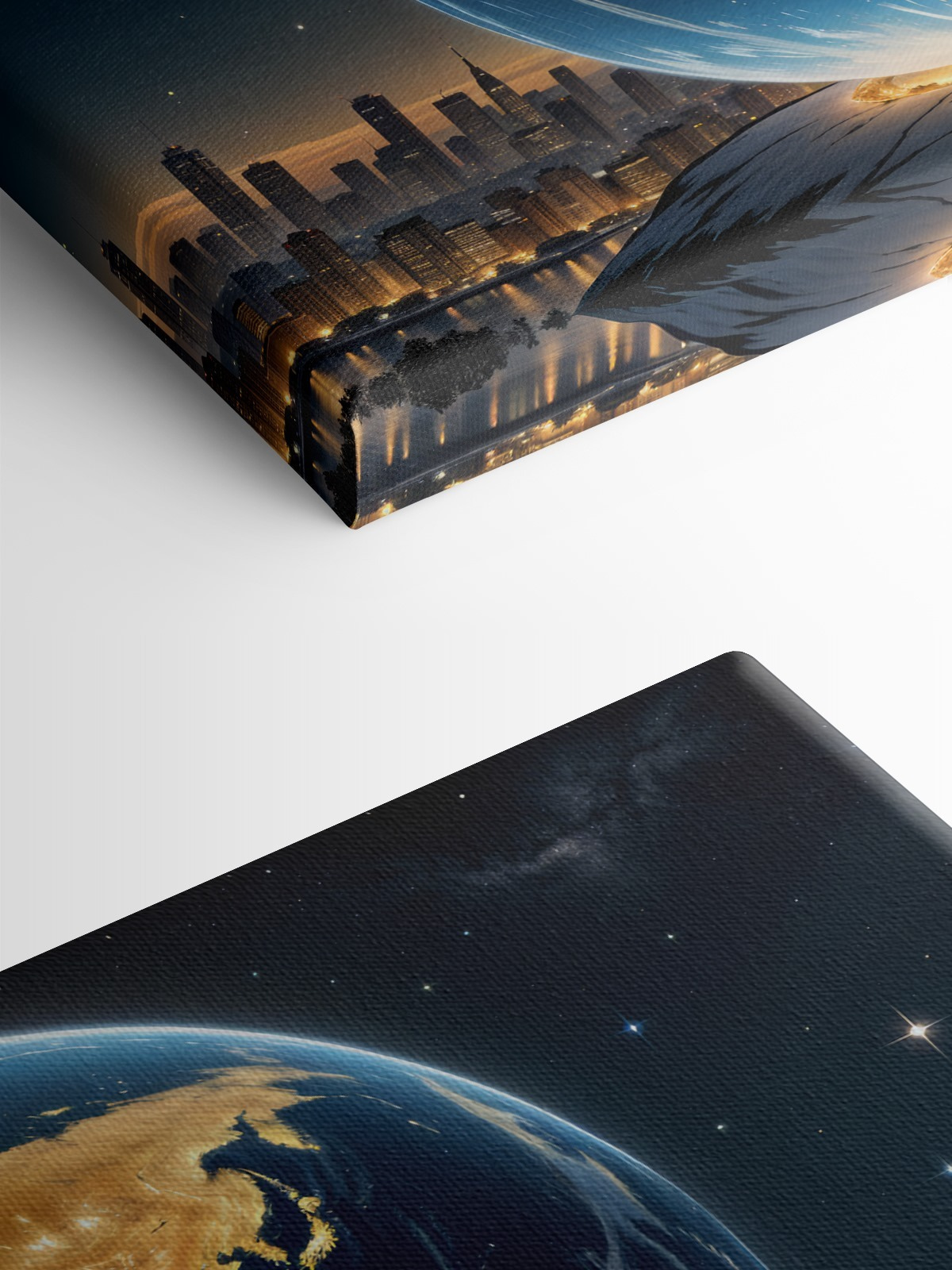 Perfect om een vleugje verfijning en een vleugje eigenzinnigheid toe te voegen aan elke kamer – of het nu de woonkamer, het kantoor of zelfs een gezellig caféhoekje is. Stel je dit eens voor: Je luiert op je bank, nipt van koffie en staart naar de wonderen van het universum. Het is als een instant humeur booster! Plus, het heeft deze magische mix van de skyline van de stad en hemelse schoonheid die zal aanzetten tot gesprekken en misschien een beetje dagdromen.