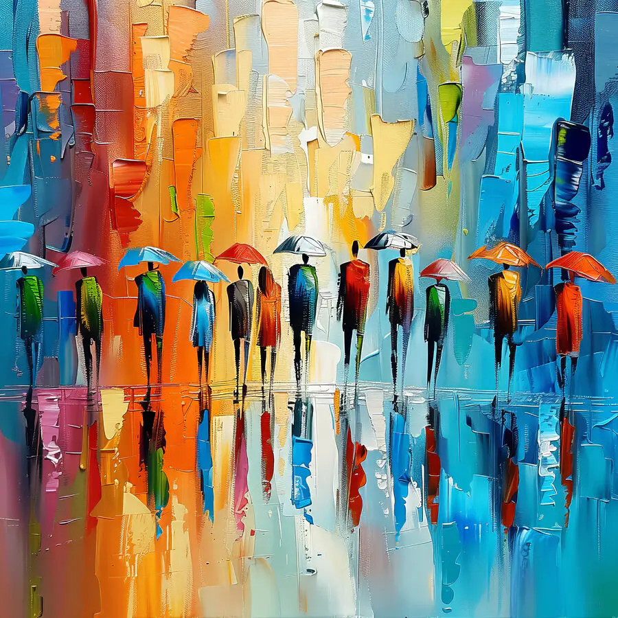 Duik in een levendige wereld met deze prachtige canvasprint met mensen die onder kleurrijke paraplu’s door het leven dansen. Stel je voor dat je koffie drinkt terwijl je naar de vrolijke parade van kleuren staart – elk figuur brengt een gevoel van beweging en vreugde, bijna alsof ze hun verhalen met je delen. De speelse contrasten tussen de felle paraplu’s en de zachte achtergrond kunnen elke kamer oplichten. Het is perfect om gesprekken op gang te brengen of om een ruimte gezelliger te maken. Een beetje eigenzinnigheid, een vleugje kleur – wie zou daar niet om willen glimlachen? Laat dit stuk je dag opfleuren, regen of zonneschijn!