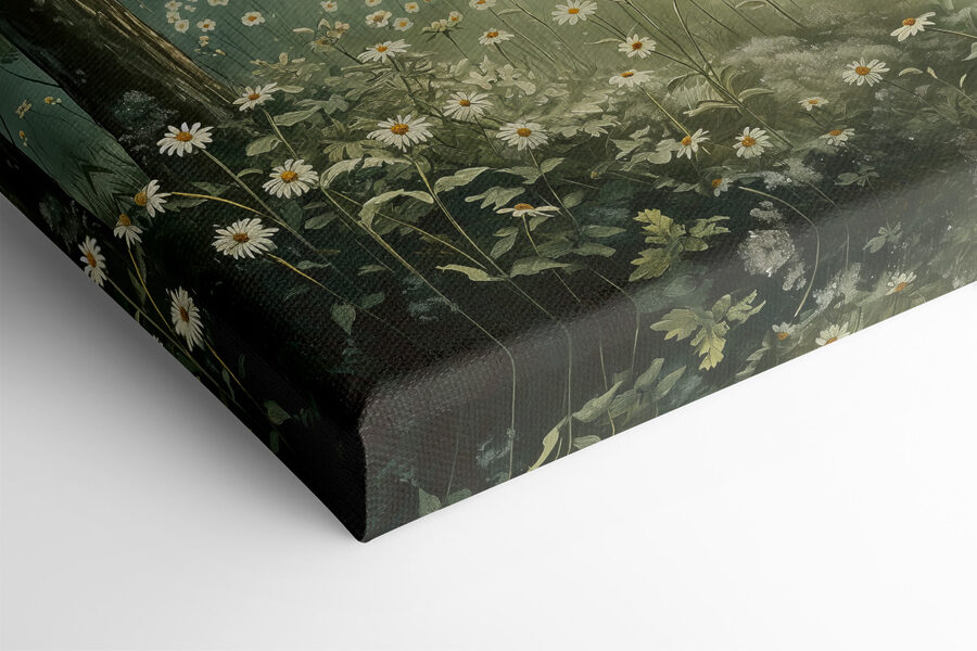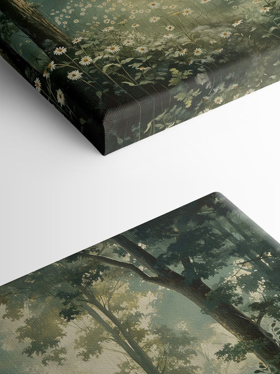 Deze canvasprint van een bos met prachtige bloemen verandert een muur in een serene ontsnapping en voelt aan alsof je in een dagdroom stapt. Stel je het zachte geritsel van de bladeren en de zoete geur van bloemen voor terwijl het zonlicht door de bomen schijnt. Het is perfect om een gezellige leeshoek op te fleuren of een vleugje natuur toe te voegen aan een thuiskantoor. Vrienden kunnen verdwalen in de charme en herinneringen ophalen aan wandelingen en picknicks. Elke blik kan een moment van rust oproepen, een zachte herinnering aan buitenavonturen die voor de deur wachten. Een vleugje natuur, altijd binnen handbereik.