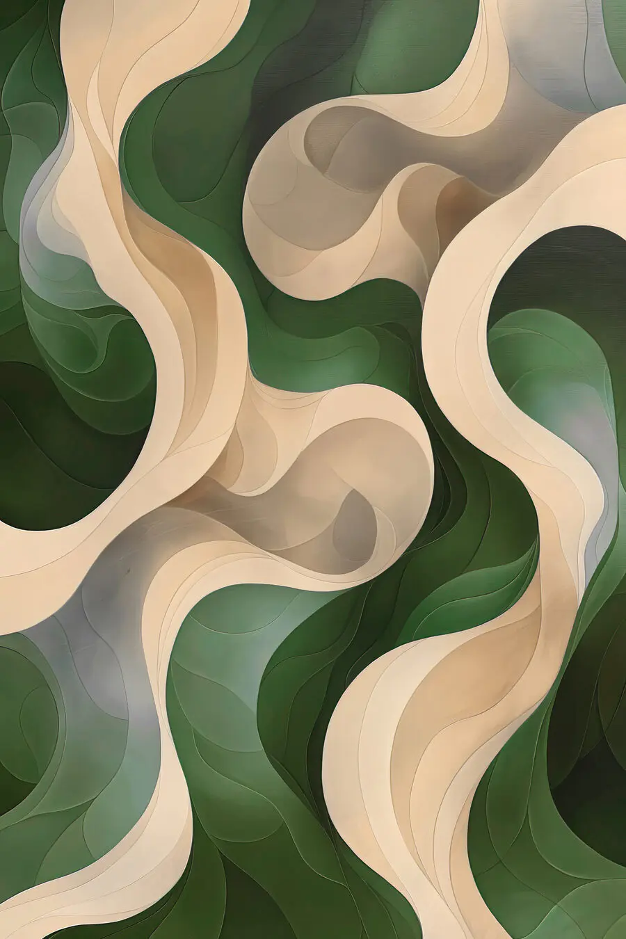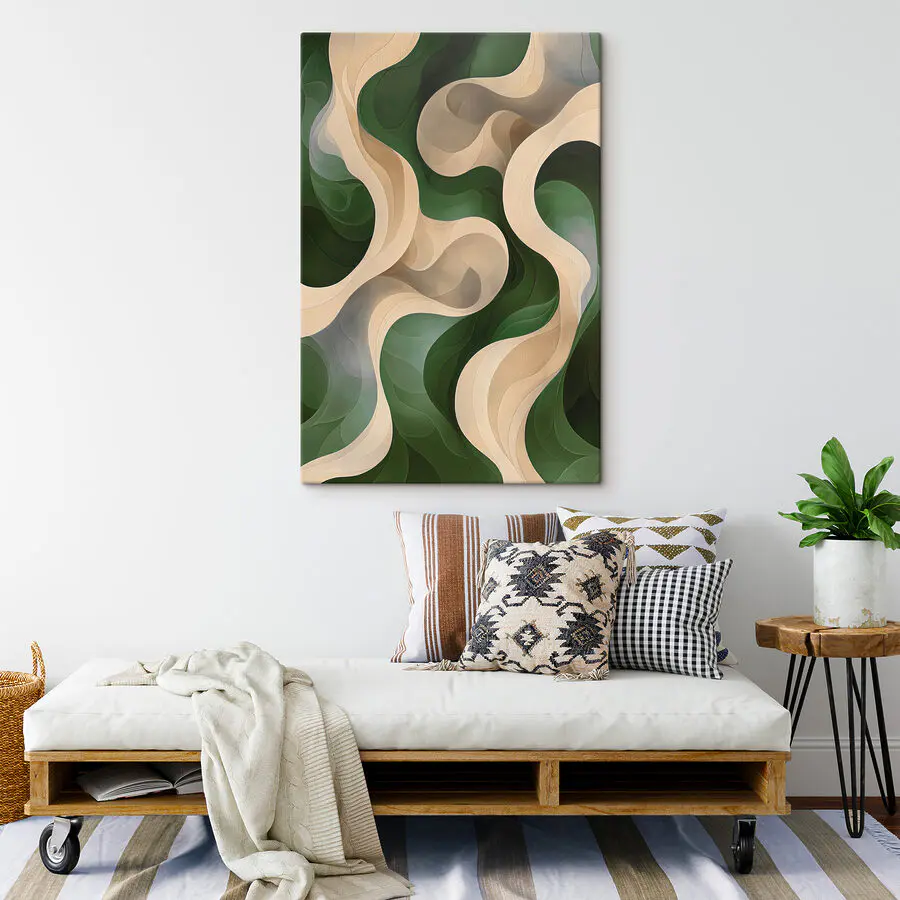 Dompel jezelf onder in een wereld waar groen en crème elkaar ontmoeten in een lieflijke dans van golven. Deze canvasprint met zijn zachte rondingen en vloeiende patronen geeft een serene sfeer die elke ruimte kan transformeren. Zie het al hangen in een gezellig leeshoekje – perfect voor die rustige namiddagen met een kopje thee. De combinatie van kleuren voelt als een zacht briesje op een warme dag, zacht maar opbeurend. Het is als de rust na een regenbui, die rust en een vleugje natuur binnenshuis brengt. Dit kunstwerk hangt niet zomaar aan de muur, het fluistert een verhaal over evenwicht en harmonie en nodigt je elke keer uit om het beter te bekijken. Voeg dit stuk toe aan je inrichting en zie hoe je kamer op subtiele maar prachtige wijze tot leven komt.
