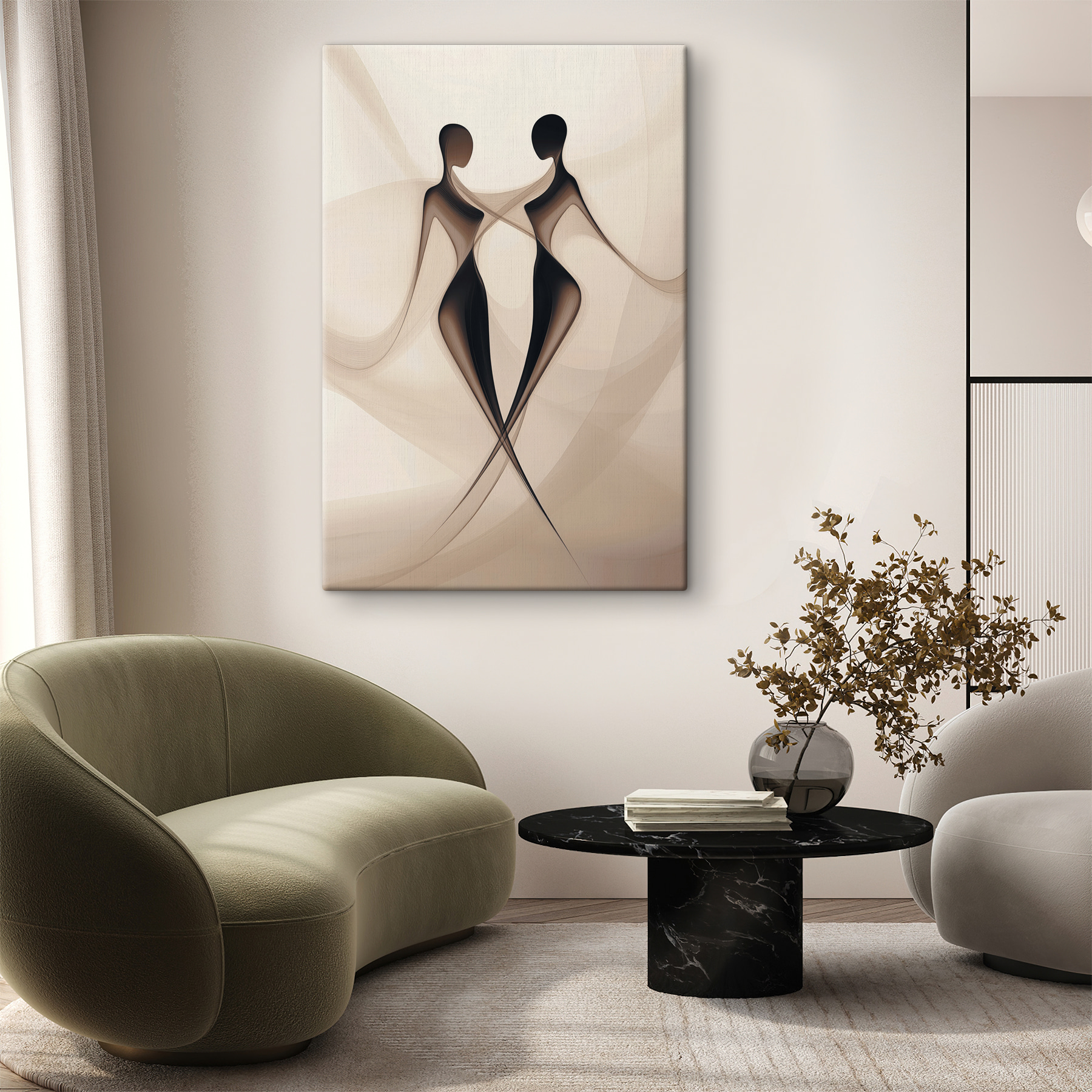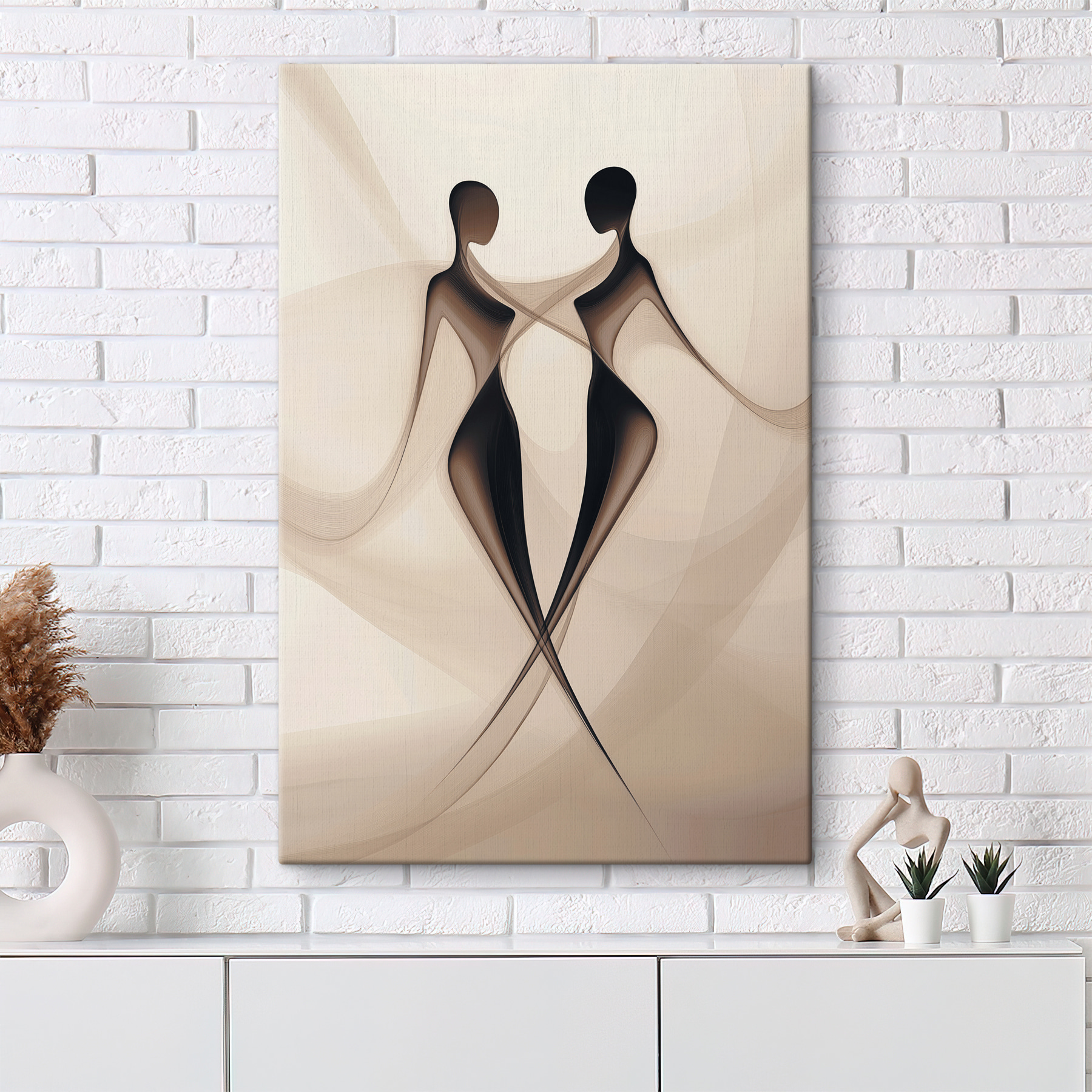 Ontdek een fascinerend stuk dat warmte geeft aan elke ruimte. Deze canvasprint, met twee elegante silhouetten in een sierlijke omhelzing, voelt als een zachte knuffel voor je muren. Het zachte zwart-wit palet nodigt uit tot een knusse sfeer en maakt tegelijkertijd een gedurfd statement. Zie het al hangen in een knusse leeshoek of zelfs in een chique hal, waar het aanzet tot gesprekken en misschien zelfs een glimlach. Perfect voor mensen die houden van een minimalistisch tintje en moeiteloos te combineren met verschillende inrichtingsstijlen. Het is niet zomaar kunst; het is een herinnering aan verbondenheid en elegantie en voegt net dat beetje extra toe aan je huis.