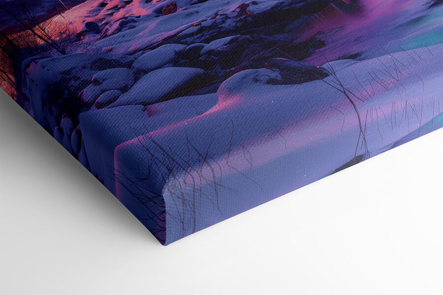 Transformeer elke ruimte met deze fascinerende canvasprint met een besneeuwd landschap, majestueuze bergen en een sereen meer. Het is alsof je een stukje natuur in huis haalt. Stel je voor dat je lekker knus zit met een warm drankje, starend naar de prachtige kleuren van de lucht en een beetje verkoeling voelend van die denkbeeldige winterbries. Het dromerige tafereel wekt dagdromen over avontuur op, waardoor het perfect is voor een woonkamer of een rustig leeshoekje. Vrienden zullen de sfeer bewonderen en misschien krijg jij wel trek in warme chocolademelk omdat het een vredige, betoverende sfeer creëert. Verhoog je decor – het is een perfecte ontsnapping!