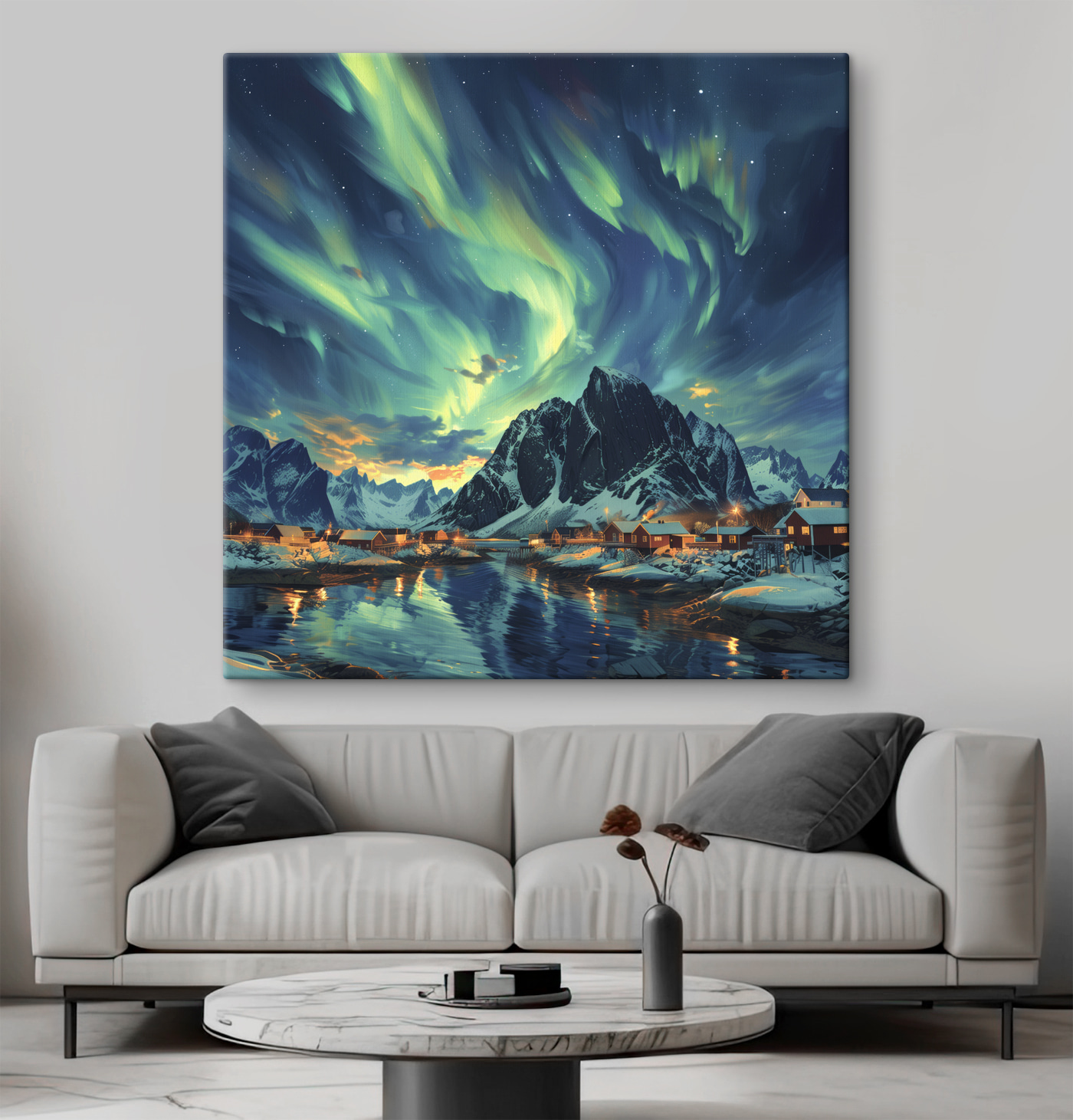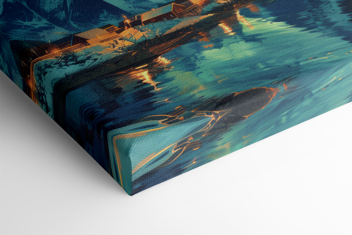 Stel je eens voor dat je wakker wordt in een wereld waar de lucht danst van de kleuren, zachte sneeuw de grond bedekt en gezellige huizen langs een sereen meer staan. Met deze canvasprint “Landschap met een meer en huizen in de sneeuw” haal je die sfeer in huis. Het is perfect voor natuurliefhebbers of dromers die een besneeuwd wonderland niet kunnen weerstaan. Voel de vredige sfeer je kamer binnensijpelen. Het kan zelfs inspireren tot een kop warme chocolademelk bij het vuur. Zet hem ergens neer waar je je ontspant en zie hoe elke dag aanvoelt als een sneeuwdag!