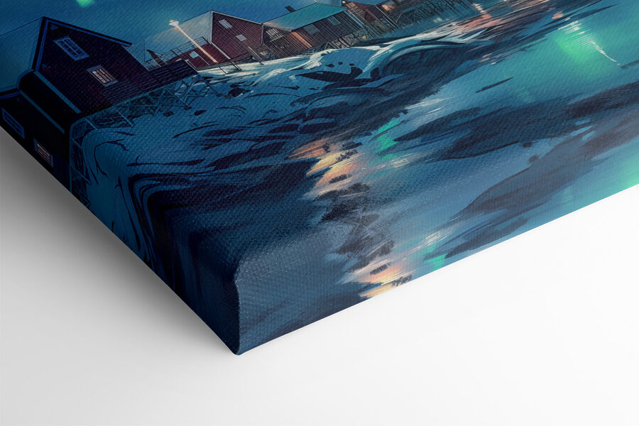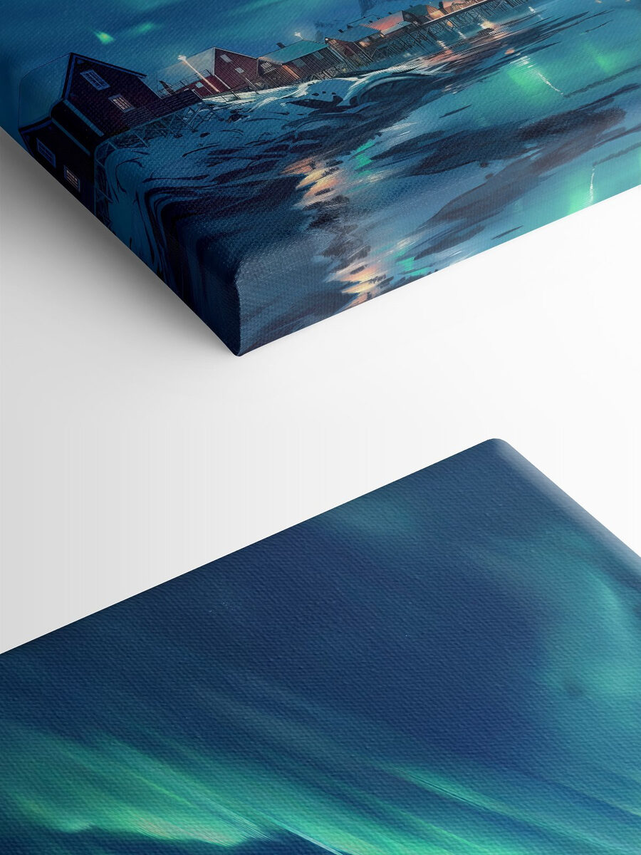 Transformeer je kamer met deze prachtige canvasprint van de Aurora Borealis die zijn gloed over een besneeuwd berglandschap werpt. Stel je voor dat je lekker knus met een warm drankje vanuit je woonkamer naar deze kleurrijke lichtshow zit te staren. De levendige tinten dansen boven een vredig dorp, waardoor elke muur aanvoelt als een venster naar een andere wereld. Het is alsof de natuur een feestje geeft en iedereen is uitgenodigd! Perfect voor liefhebbers van het buitenleven of iedereen die een beetje magie in zijn leven nodig heeft. Elke blik inspireert tot avontuur en dagdromen over verre oorden, waardoor dit stuk meer is dan alleen decor – het is een uitnodiging om te dwalen.