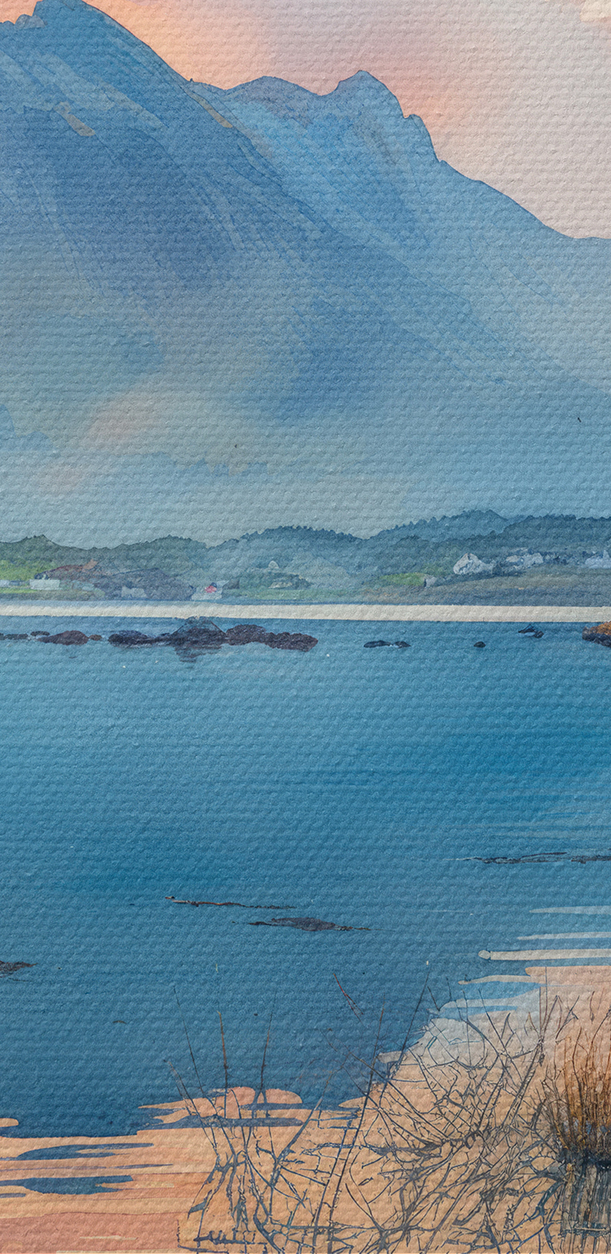 Deze print “Water met bergen op de achtergrond” heeft iets magisch. Het is alsof je in een kalme ochtendmist stapt, de natuur in een omhelzing van aquareldromen. Perfect voor die rustige hoekjes waar je aan je koffie nipt en grootse avonturen plant of, laten we eerlijk zijn, gewoon probeert wakker te worden. Elke blik voelt als een kleine ontsnapping, een zachte herinnering om adem te halen te midden van de drukte van het leven. Stel je voor dat dit meesterwerk verhalen met je deelt terwijl het gewoon aan je muur hangt, als een oude vriend.