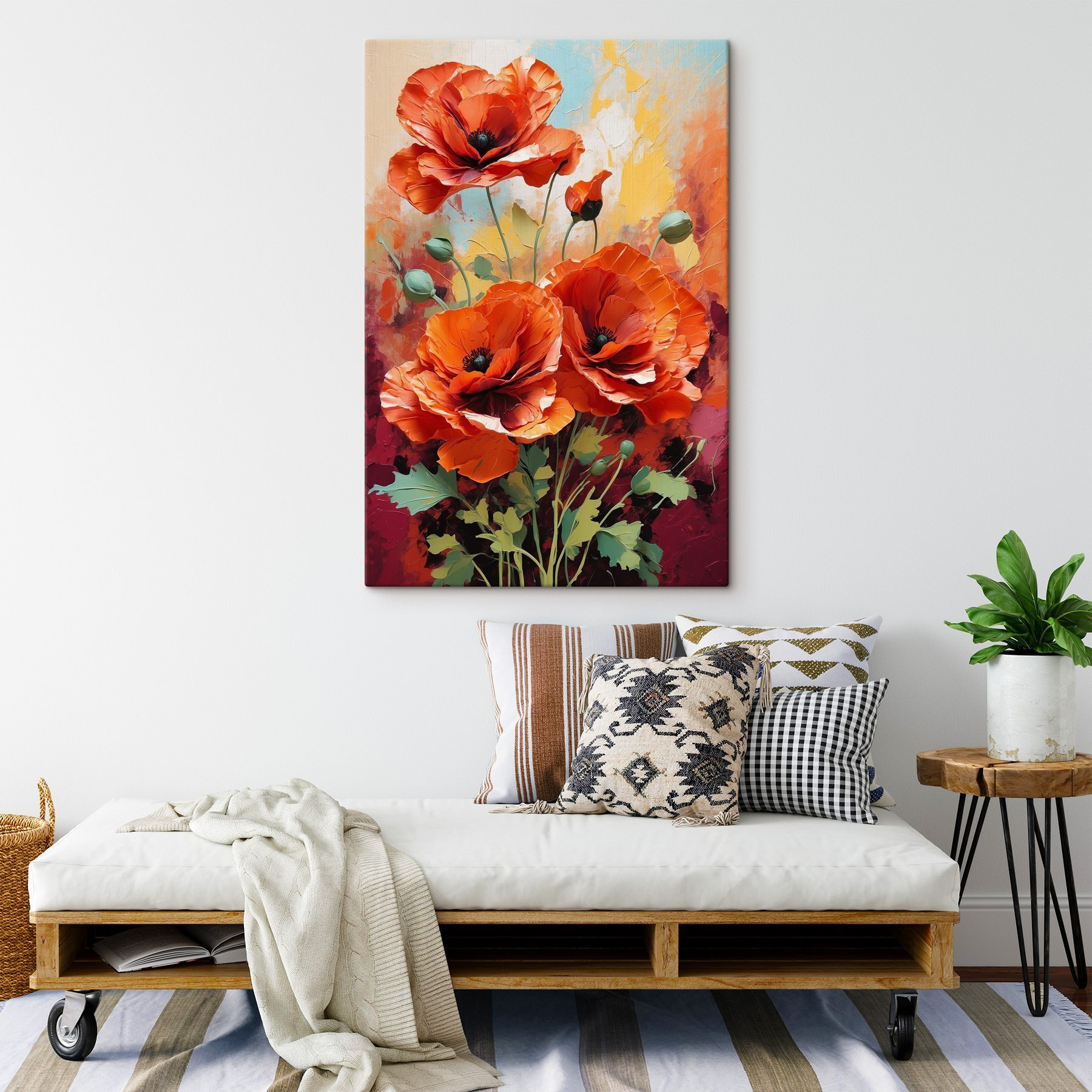 Deze prachtige canvasprint met de eenvoudige naam “Canvas Schilderijen s40323” is een verademing voor elke kamer. Stel je drie knalrode klaprozen voor die bijna van het doek af spatten, hun bloemblaadjes zo levendig dat je zou zweren dat je hun zoete geur zou kunnen ruiken. Dit werk combineert prachtig de elegantie van beeldende kunst met de spontaniteit van aquarel – het is alsof iemand een tuin heeft vastgelegd op een magische, zonovergoten middag.