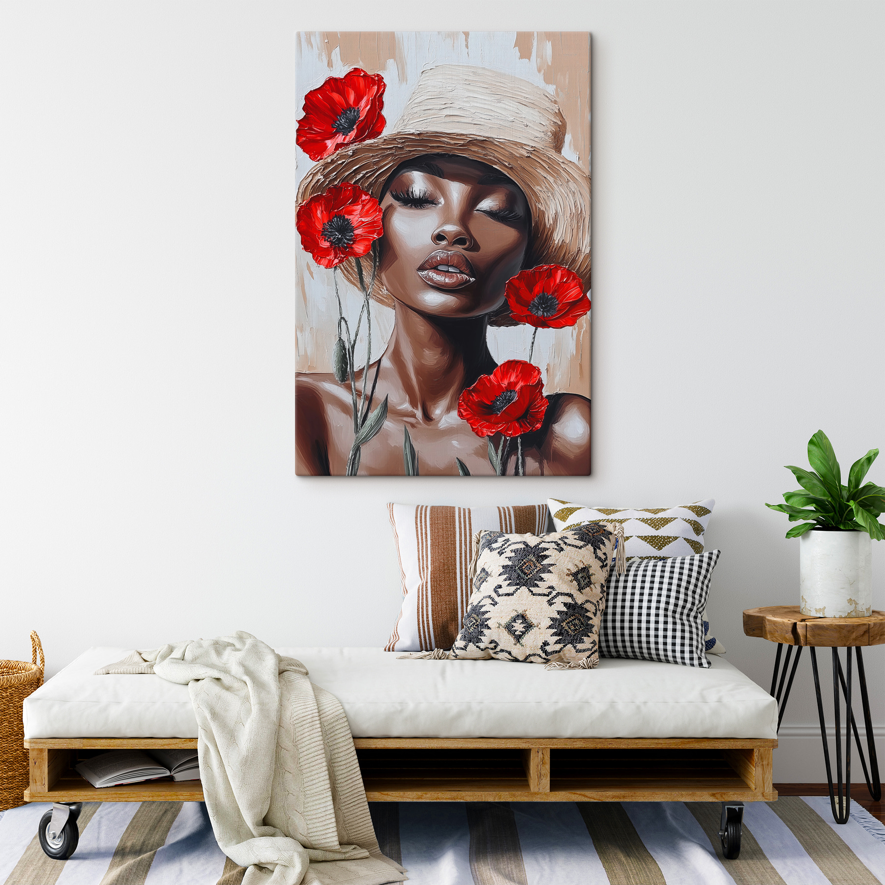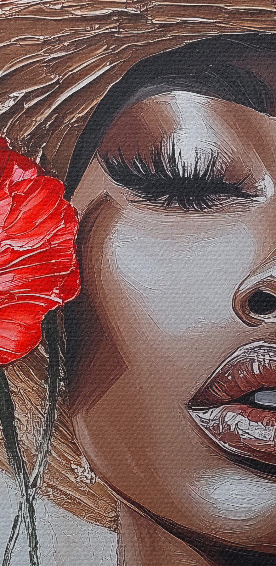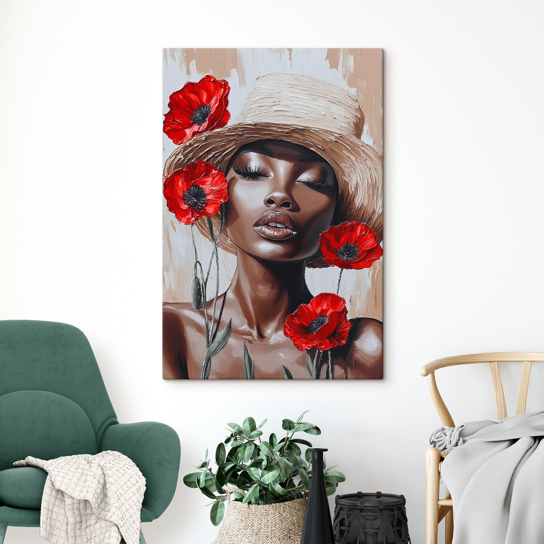 Transformeer elke ruimte met deze prachtige canvasprint van een vrouw met levendige bloemen in haar haar. Het is als een frisse wind – perfect om een knus hoekje op te fleuren of een opvallend statement te maken in je woonkamer. Stel je voor dat je ‘s ochtends aan je koffie nipt terwijl deze schoonheid over je waakt en een vleugje natuur en gratie in huis brengt. Die opvallende rode bloemen voegen een vleugje kleur toe dat de somberste dagen zou kunnen verjagen. Het is niet zomaar kunst; het is een vibe, een klein stukje vreugde dat verhalen van zonneschijn en sereniteit fluistert. Perfect voor iedereen die wat persoonlijkheid in zijn interieur wil brengen.