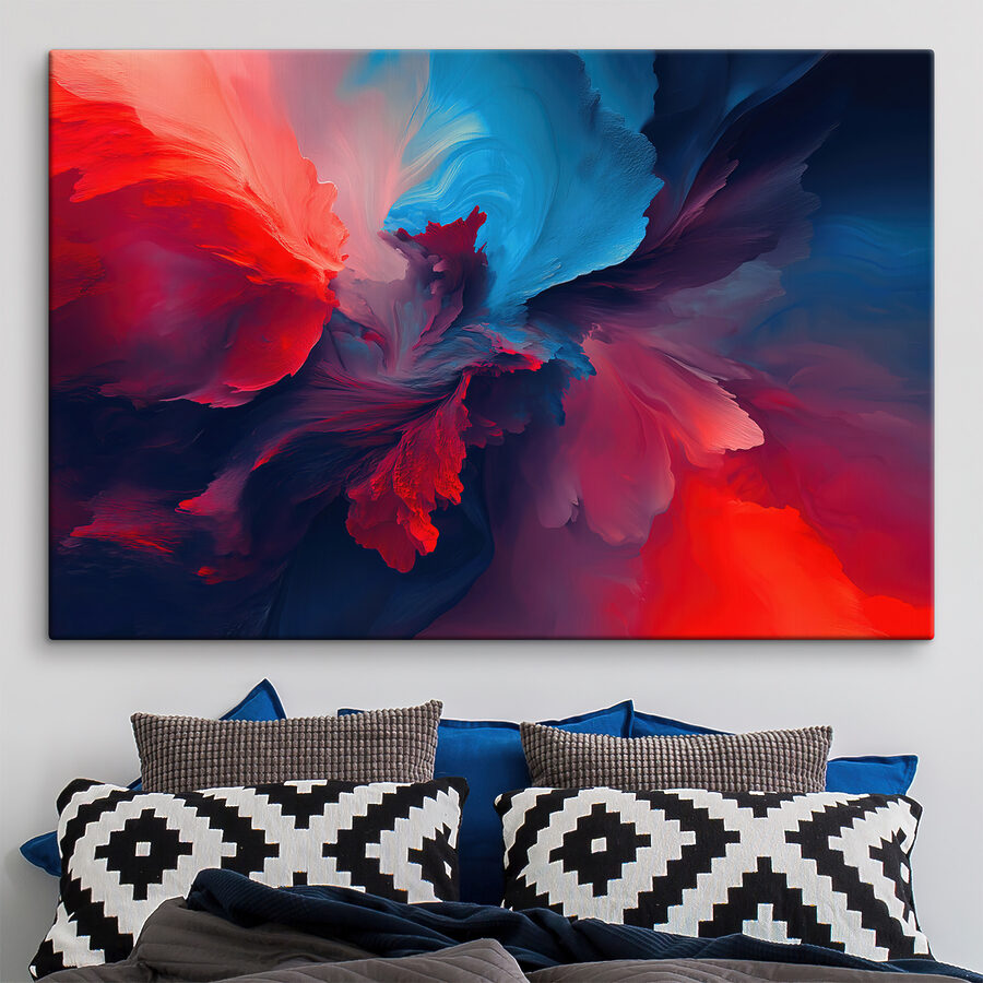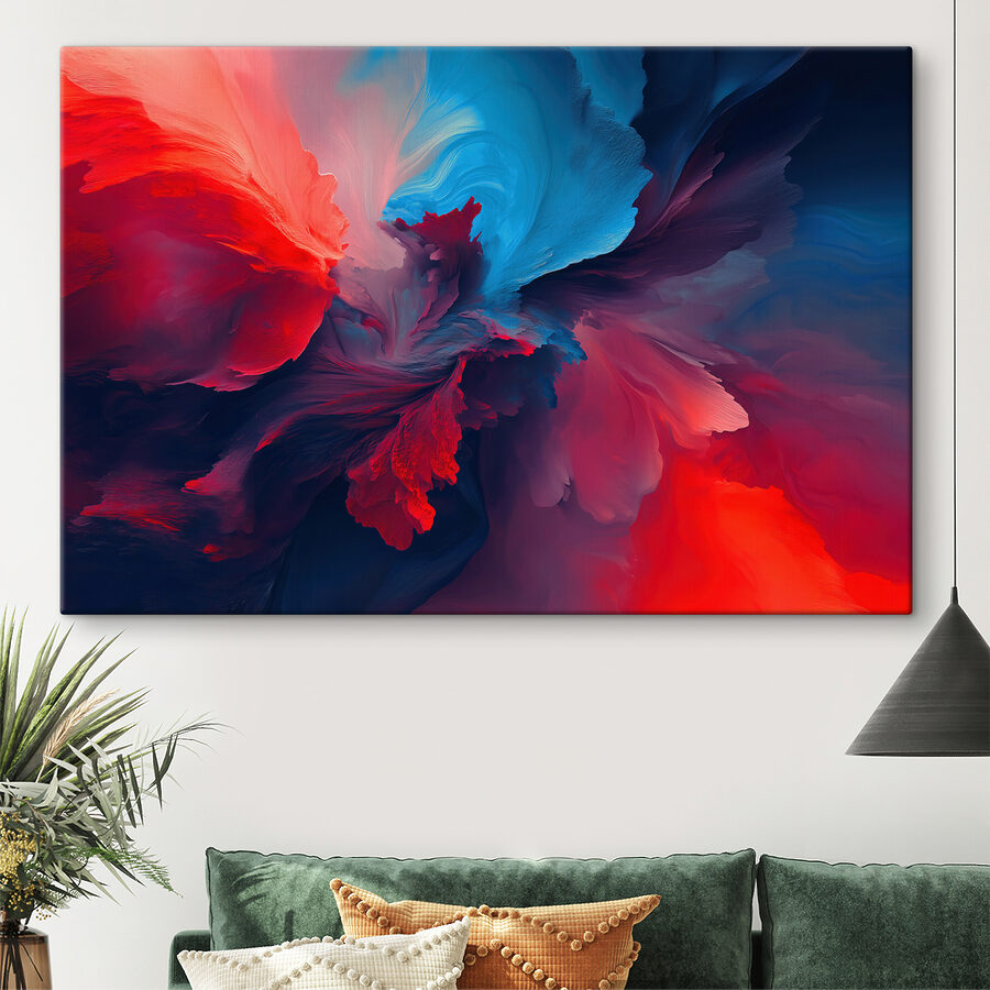 Breng een vleugje levendigheid in elke kamer met deze opvallende canvasprint, waar kleurrijke verfspatten speels over het oppervlak dansen. Stel je voor dat dit levendige kunstwerk je leefruimte opfleurt, gesprekken op gang brengt of gewoon een glimlach tevoorschijn tovert telkens als het je in het oog springt. De gedurfde rode en rustgevende blauwe tinten vormen een perfecte balans, waardoor het een fantastisch statementstuk is. Of het nu boven een gezellige bank hangt of in een serene hoek in de slaapkamer, dit stuk brengt moeiteloos energie en warmte. Het is alsof je een minifeest van kleur aan je muur hebt hangen!