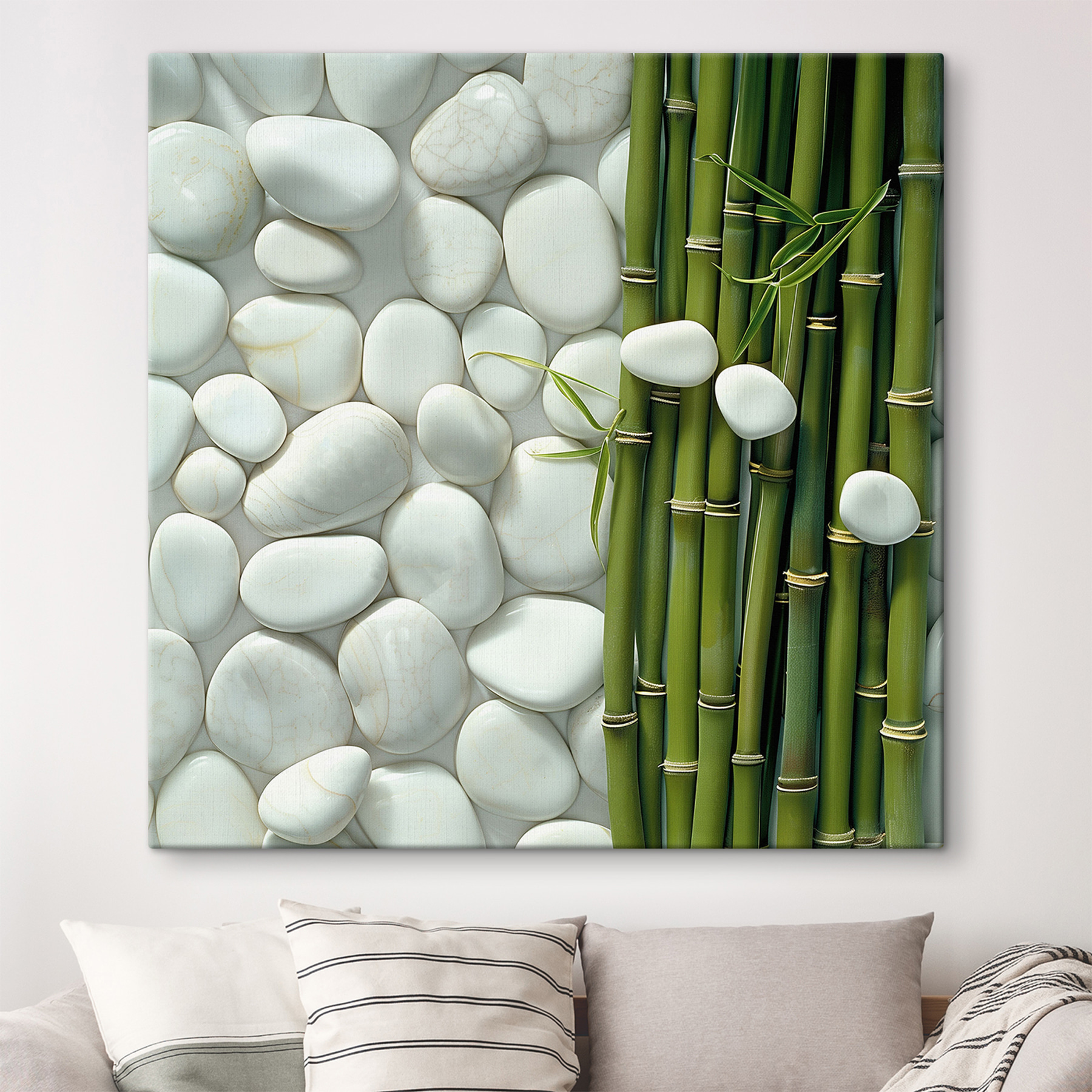Verander elke muur in een vredig toevluchtsoord met deze prachtige canvasprint met een groep levendige groene bamboestengels genesteld naast gladde witte rotsen. Het is alsof je een stukje natuur in de woonkamer haalt en je doet denken aan rustgevende wandelingen door rustige tuinen. De bamboe en rotsen vormen een rustgevend contrast, perfect om gesprekken op gang te brengen of gewoon om je te laten glimlachen op een hectische dag. Stel je voor dat je van een kopje thee of koffie geniet, terwijl je je koestert in de kalmte die dit kunstwerk met zich meebrengt. Het is niet alleen decoratie; het is een stemming. Ideaal om thuis een oase te creëren!