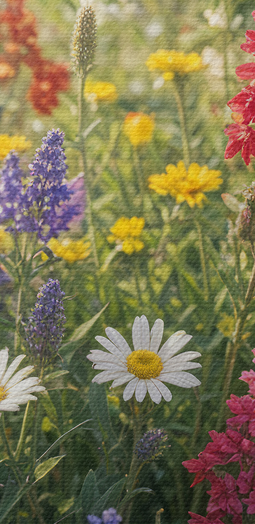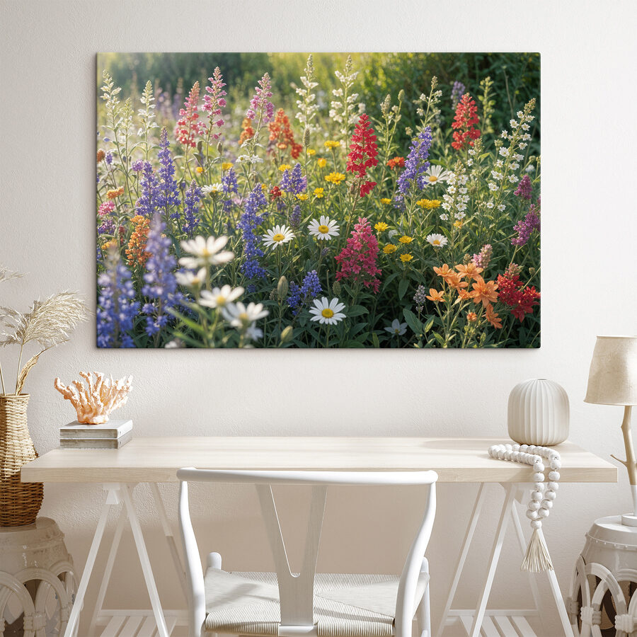 Stel je voor dat je een kamer binnenloopt en begroet wordt door een uitbarsting van wilde bloemen – deze canvasprint s40390 doet precies dat! Het is net een mini-weide gevangen in de tijd, die elke ruimte tot leven brengt. Die kleuren! Rood, paars, geel en meer, allemaal samen dansend in een prachtige chaos. Perfect om een vleugje natuur aan je huis toe te voegen en elke saaie muur te veranderen in een opvallend middelpunt.