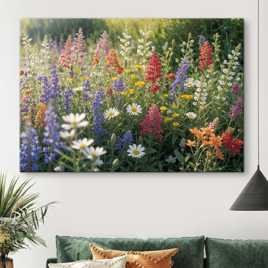 Stel je voor dat je een kamer binnenloopt en begroet wordt door een uitbarsting van wilde bloemen – deze canvasprint s40390 doet precies dat! Het is net een mini-weide gevangen in de tijd, die elke ruimte tot leven brengt. Die kleuren! Rood, paars, geel en meer, allemaal samen dansend in een prachtige chaos. Perfect om een vleugje natuur aan je huis toe te voegen en elke saaie muur te veranderen in een opvallend middelpunt.