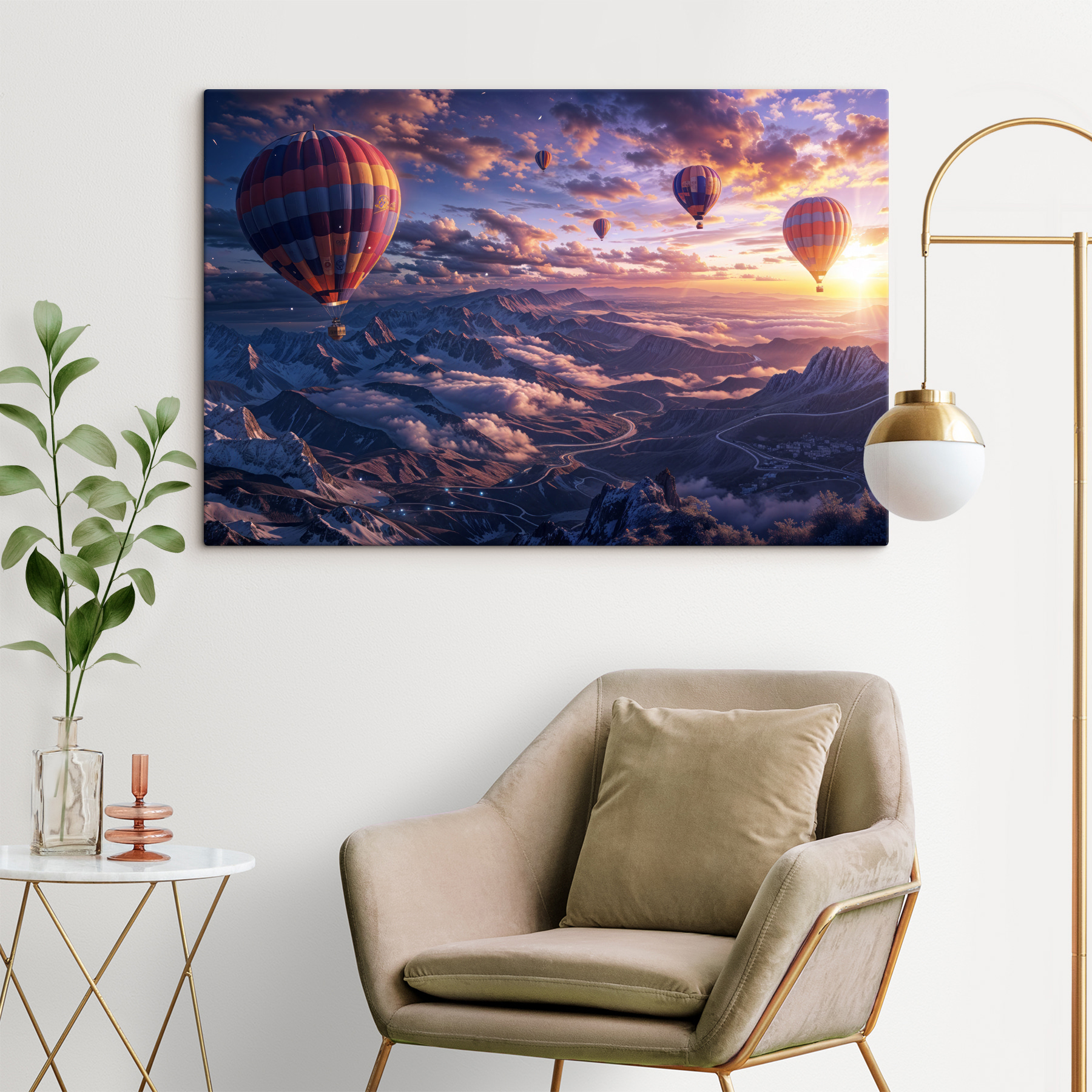Stel je dit eens voor: levendige heteluchtballonnen die hoog boven majestueuze bergen zweven, geschilderd tegen een dromerige zonsondergang. Dit canvasstuk is niet zomaar kunst, het is als een stukje avontuur voor je muren. Elke ballon lijkt verhalen te fluisteren over verkenning en vrijheid, en verleidt iedereen die ernaar kijkt om te dromen van hun eigen reizen. De kleuren knallen, nodigen warmte en verwondering uit in elke kamer. Het is perfect om gesprekken op gang te brengen of gewoon dat “ahh” moment op te roepen wanneer je even pauzeert van de alledaagse drukte. Bovendien herinnert het je eraan dat je soms letterlijk of figuurlijk moet vliegen. Waarom zou je jouw ruimte geen canvas voor vreugde laten zijn?