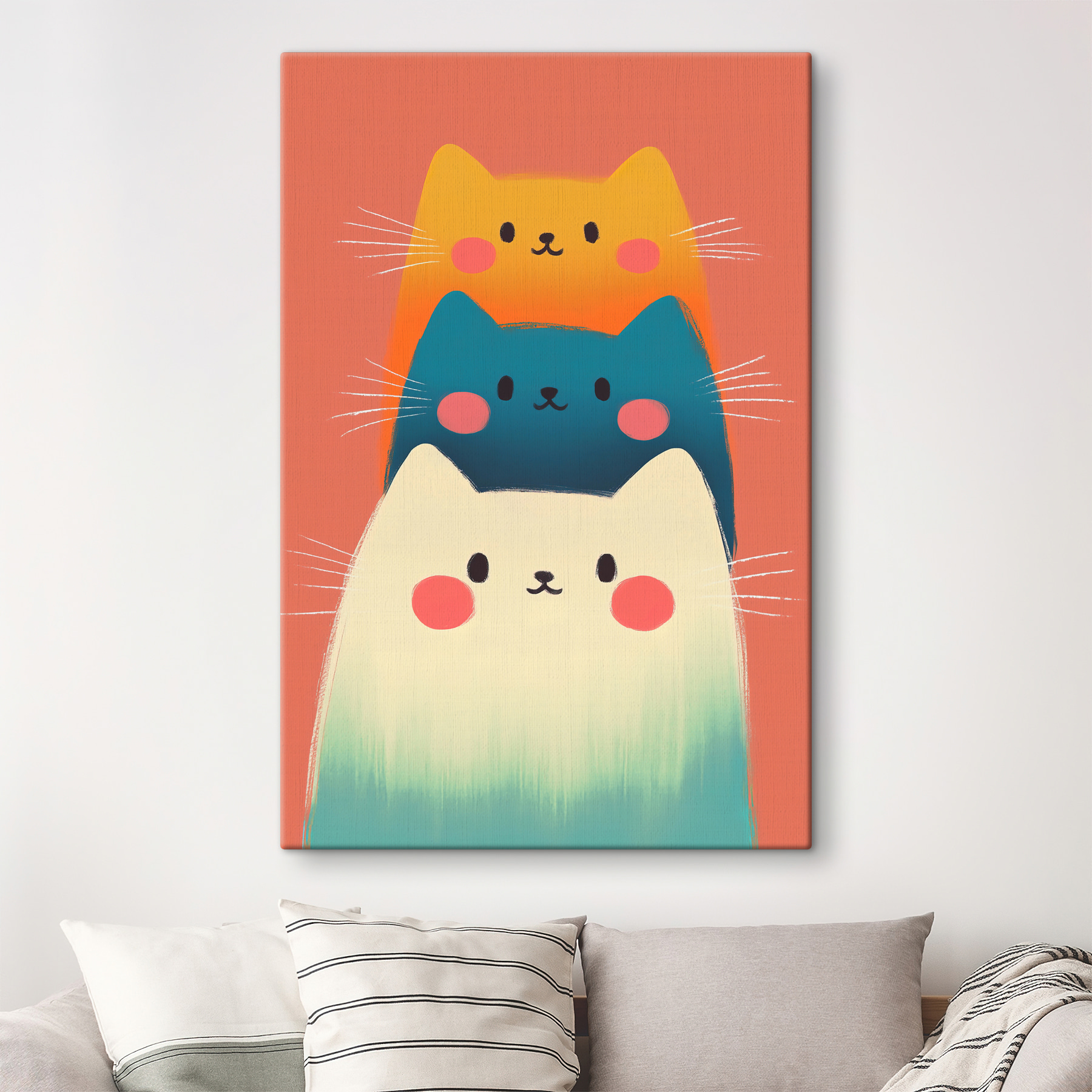 Heb je een voorliefde voor eigenzinnige en schattige decoraties? Maak dan kennis met “Canvas Schilderijen s40431”! Dit levendige stuk is perfect voor iedereen die een vleugje eigenzinnigheid niet kan weerstaan – kijk maar eens naar die kleurrijke katten opgestapeld als een gezellige katachtige toren! Het tovert zeker een glimlach op je gezicht en vrolijkt je muren op. Geweldig voor elke hoek van het huis die wel een oppepper kan gebruiken, bijvoorbeeld de keuken, een kinderkamer of de gang.