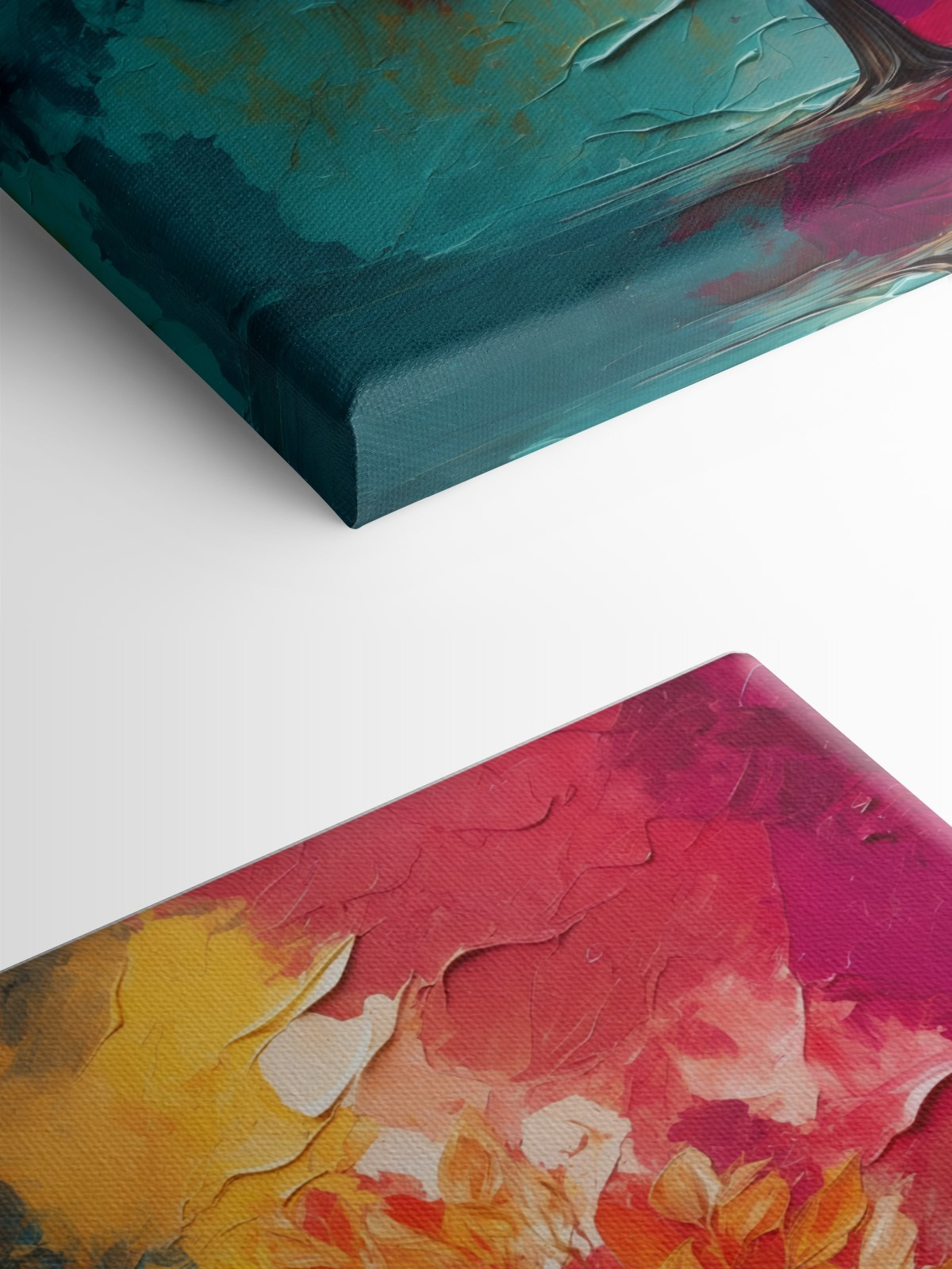 De mix van groenblauw, vurig oranje en dieprood… het is alsof een zonsondergang en een stapel herfstbladeren een liefdeskind kregen. Perfect om elke kamer op te fleuren die een vleugje kunstzinnigheid uit de natuur nodig heeft. Mensen die het zien, voelen misschien meteen een vonk van vreugde of ontspanning. Maar misschien ben ik dat alleen! Het is niet alleen maar decoratie; het is een sfeermaker, een gespreksstof… een van die stukken die je huis uniek maken.