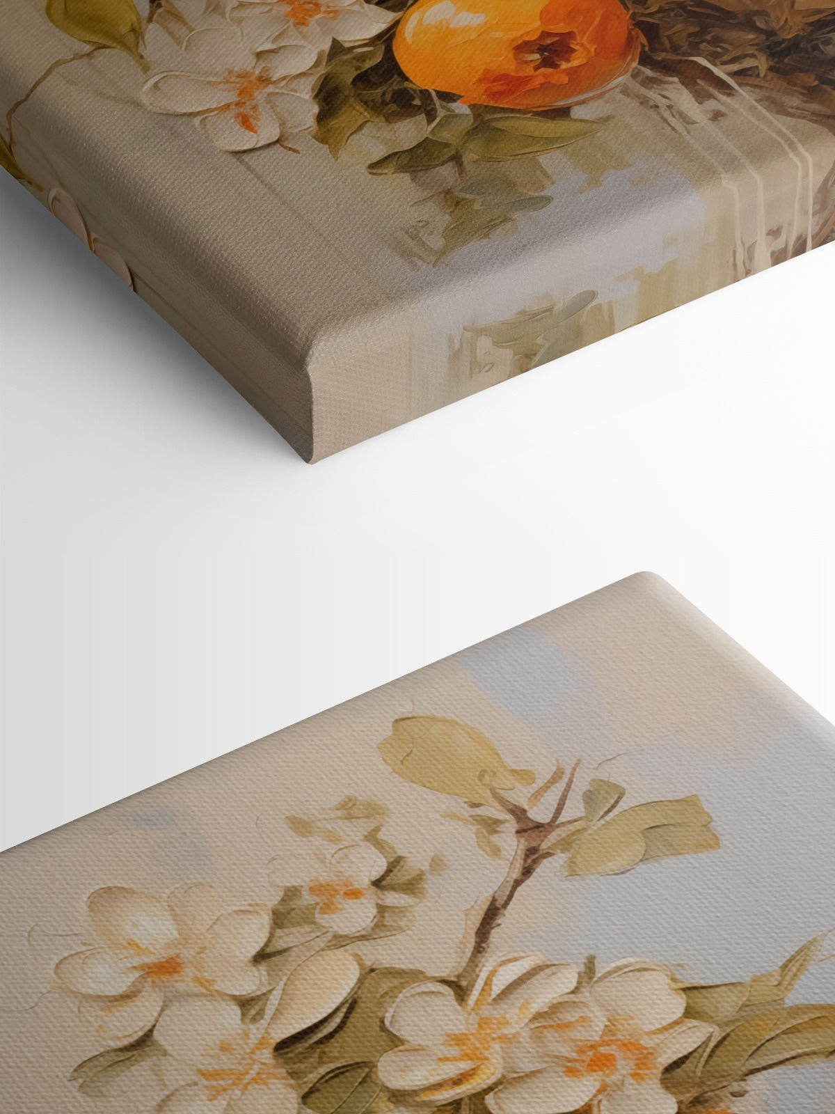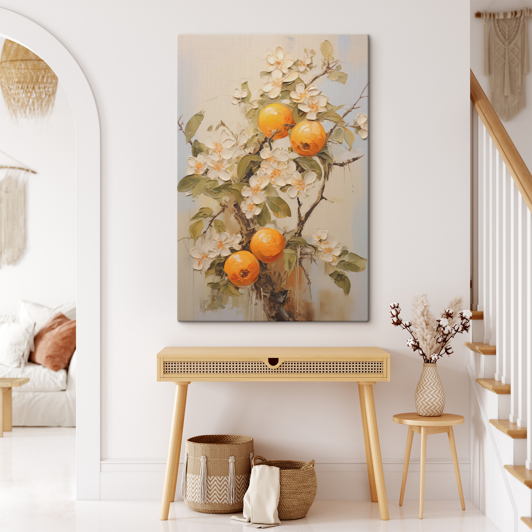 Fleur elke ruimte op met deze prachtige canvasprint met charmante sinaasappels tussen delicate bloemen. Het is alsof je een stukje zonnig boomgaardleven in huis haalt. Zie het al hangen in een gezellige keuken of een vrolijke eethoek – het zal zeker gesprekken op gang brengen. De levendige sinaasappels steken af tegen de zachte tinten en vormen een verfrissend middelpunt. Stel je voor dat je ‘s ochtends aan je koffie nipt terwijl je je koestert in de warme gloed. Het is niet alleen kunst; het is de sfeermaker die iedereen nodig heeft. Het enige wat nog ontbreekt is een zoete citrusgeur! Dit stuk is perfect voor iedereen die de schoonheid van de natuur op een unieke manier waardeert.