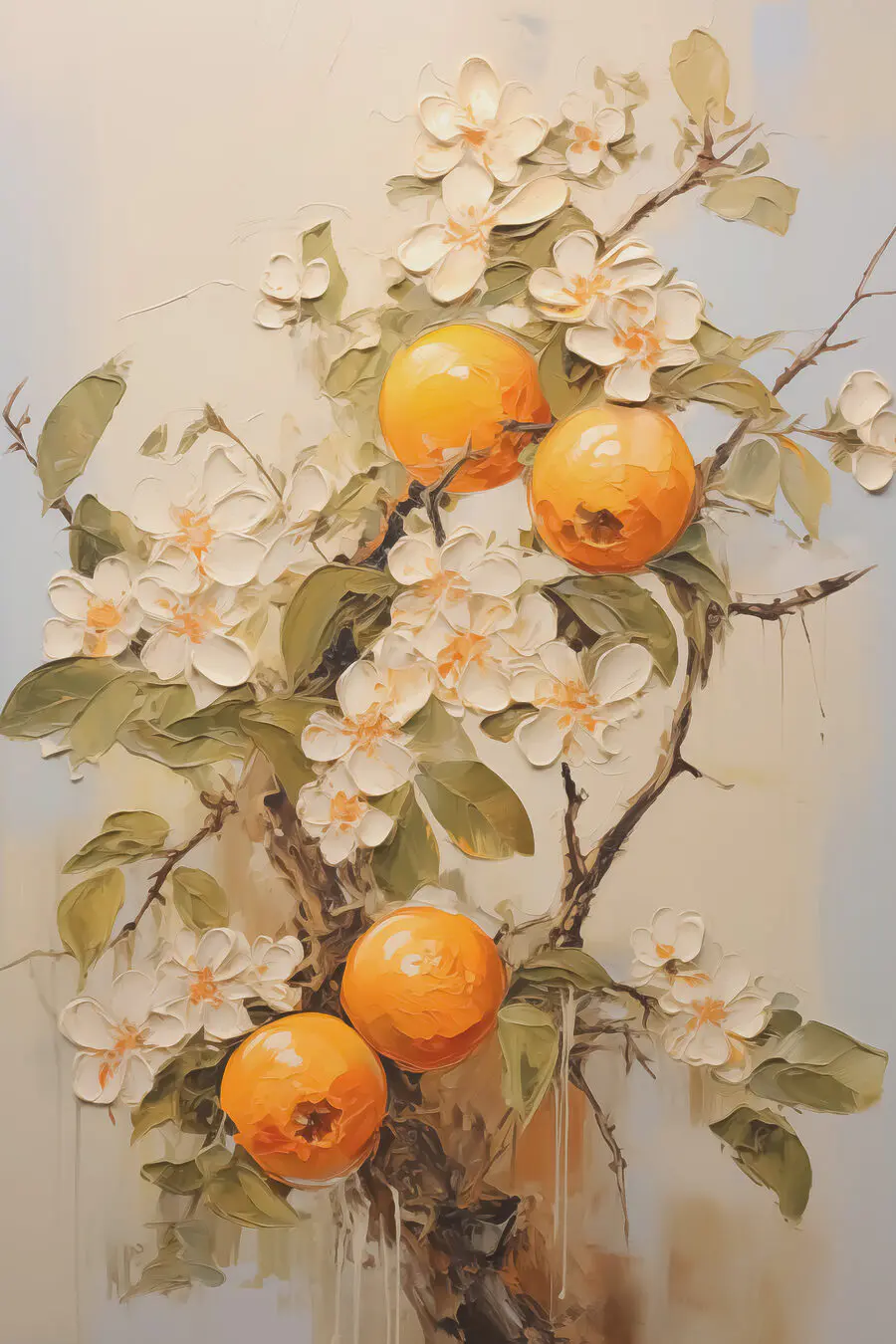 Fleur elke ruimte op met deze prachtige canvasprint met charmante sinaasappels tussen delicate bloemen. Het is alsof je een stukje zonnig boomgaardleven in huis haalt. Zie het al hangen in een gezellige keuken of een vrolijke eethoek – het zal zeker gesprekken op gang brengen. De levendige sinaasappels steken af tegen de zachte tinten en vormen een verfrissend middelpunt. Stel je voor dat je ‘s ochtends aan je koffie nipt terwijl je je koestert in de warme gloed. Het is niet alleen kunst; het is de sfeermaker die iedereen nodig heeft. Het enige wat nog ontbreekt is een zoete citrusgeur! Dit stuk is perfect voor iedereen die de schoonheid van de natuur op een unieke manier waardeert.