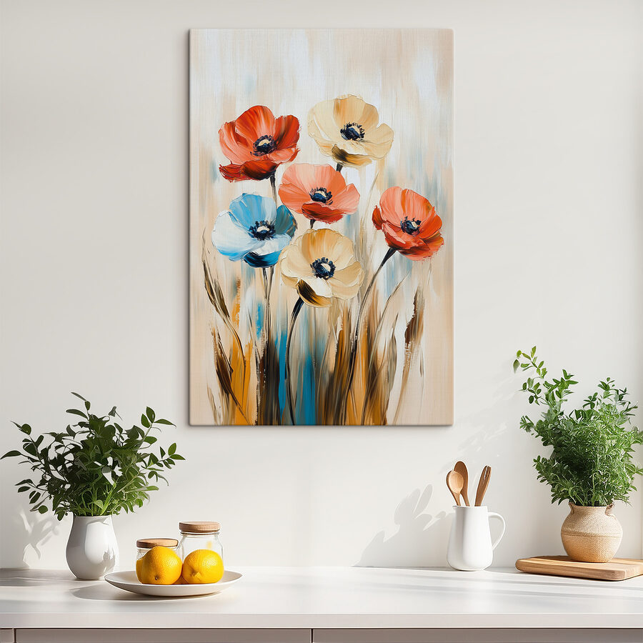 Heb je je ooit afgevraagd hoe een vleugje kleur en een vleugje natuur je ruimte energie kunnen geven? Maak kennis met de “Canvas Schilderijen s40505.” Deze schoonheid bevindt zich in de categorieën Fine Art Canvas Art, Flowers Canvas Art en Popular Canvas Art – en met een goede reden. Levendige bloemen in rood-, blauw- en crèmetinten lijken zo van het doek af te dansen! Stel je voor dat dit boven je bank hangt en regenachtige dagen opfleurt met zijn vrolijke, bloemige vibe. Het is alsof je een heerlijke tuin in je woonkamer hebt, zonder dat je water hoeft te geven!