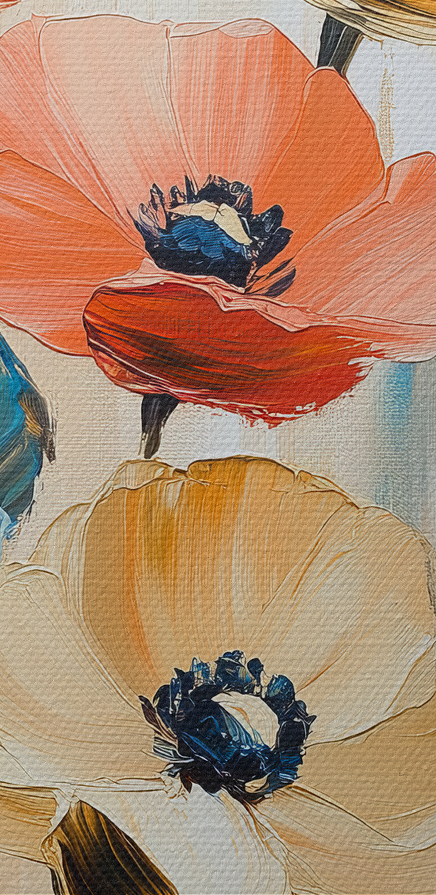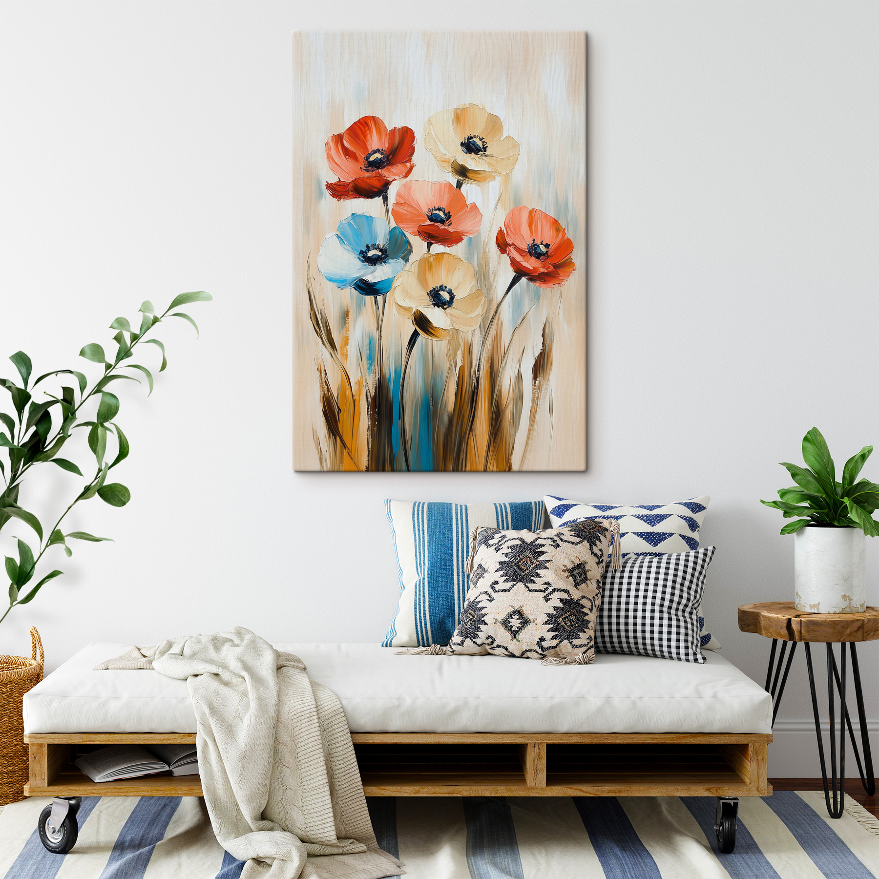 Perfect voor iedereen die van kleur houdt – en wie zou dat niet willen? Deze geschilderde bloemblaadjes hebben iets troostends. Ze fluisteren bijna een zachte groet als je langsloopt. Natuurlijk, het is kunst, maar het voelt als zoveel meer – als een warme dag in een bloeiende weide. Ideaal om een drukke kamer een vleugje sereniteit te geven of een rustig hoekje een uitbarsting van leven. Het is niet zomaar een kunstwerk… het is een sfeermaker! Pak een kopje koffie, kijk omhoog en glimlach naar je nieuwe, levendige metgezel.