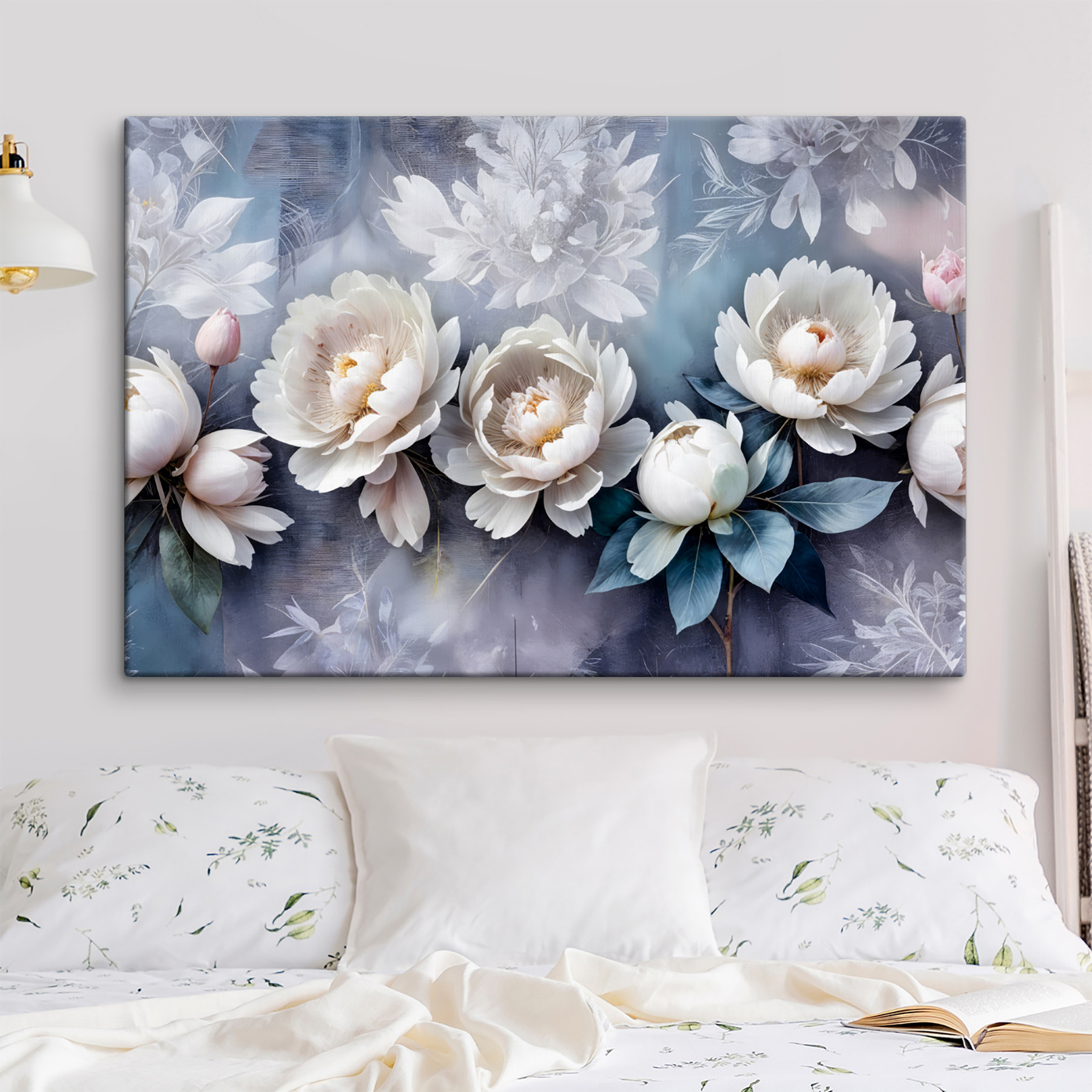 Transformeer elke ruimte met deze prachtige canvasprint met een mooie groep witte bloemen. Stel je voor dat je je woonkamer binnenloopt en de kalmte over je heen voelt spoelen, als een zacht briesje op een zonnige dag. De zachte, delicate bloemen stralen elegantie uit terwijl ze je muren opfleuren. Perfect om een serene sfeer te creëren of een gezellig hoekje op te fleuren. Of het nu gesprekken aanwakkert of je gewoon doet glimlachen elke keer als je er langs loopt, dit kunstwerk brengt een beetje natuur binnenshuis. En wie houdt er niet van bloemen die nooit verwelken?