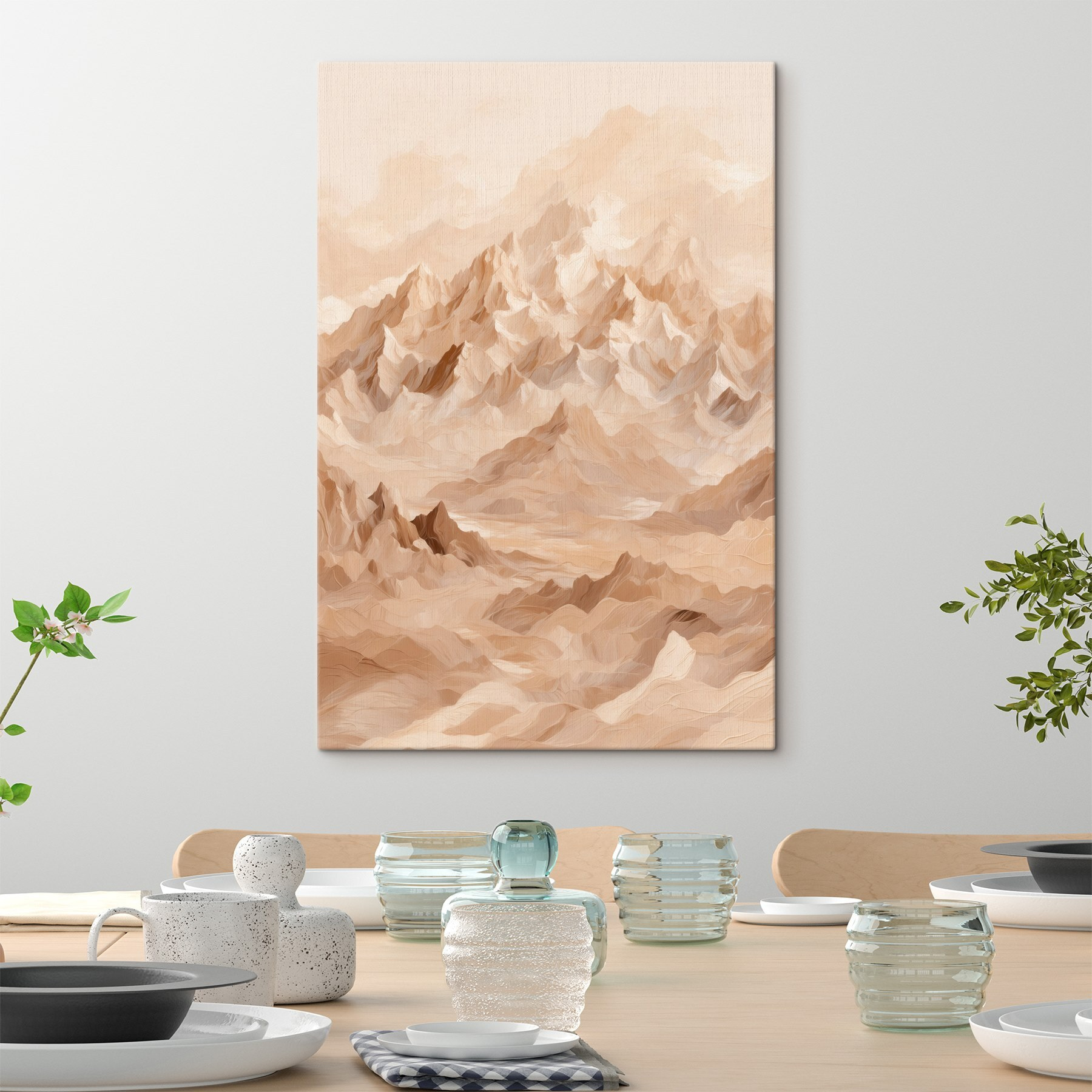 Stel je dit eens voor: een stukje natuur aan je muur. “Canvas Schilderijen Mountain Range with Many Peaks’ vangt dat moment waarop de natuur gewoon haar ding doet – majestueus, ongetemd en absoluut adembenemend. Het is alsof de bergen besloten hebben om langs te komen voor een kopje thee. De toppen lijken de hemel aan te raken en je zou zomaar een frisse bries kunnen voelen of de verre schreeuw van een adelaar kunnen horen telkens als je langsloopt. Perfect voor iedereen die houdt van een kamer met uitzicht, ook al is het een binnenpretje.