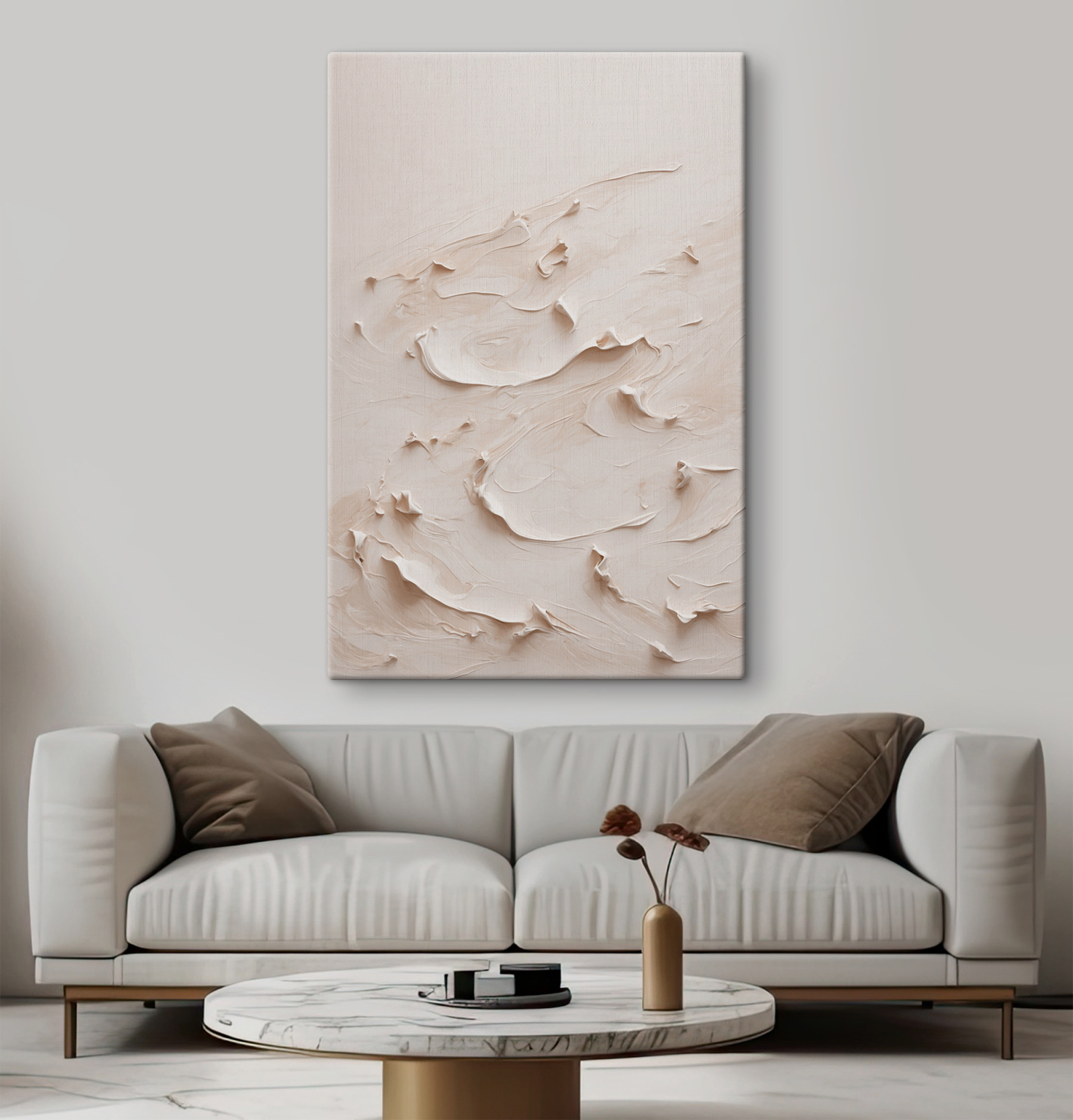 Met de naam “Creamy swirls in artistic flow” voelt deze canvasprint aan als een zacht briesje dat door je woonkamer waait. Stel je voor dat je met een kopje thee zit en je gedachten laat dwalen door die betoverende, melkachtige wervelingen. Er is iets bijna muzikaals aan de manier waarop elke curve in de volgende overgaat, als een elegante wals gevangen in kunstvorm. Perfect voor liefhebbers van kunst met een vleugje eigenzinnigheid. Het is het soort kunstwerk dat gasten doet stilstaan en zeggen: “Wow, vertel mij wat!”.