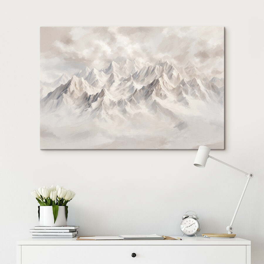 Transformeer elke kamer met deze prachtige “Canvas Schilderijen Mountain Range with Clouds”. Het is alsof je een stukje van het buitenleven in huis haalt, zonder de wandelschoenen en insectenspray. Stel je voor dat je op een kille avond met een warm drankje in de hand naar die majestueuze bergtoppen staart die baden in zachte wolken. Het zachte kleurenpalet voegt een rustige sfeer toe – perfect voor een serene ontsnapping na een lange dag. Bovendien is het een geweldige gespreksstarter. Vrienden zullen er zeker naar vragen! Het past mooi in elke ruimte, waardoor muren levendig aanvoelen. Wie wist dat wolken zo stijlvol konden zijn?