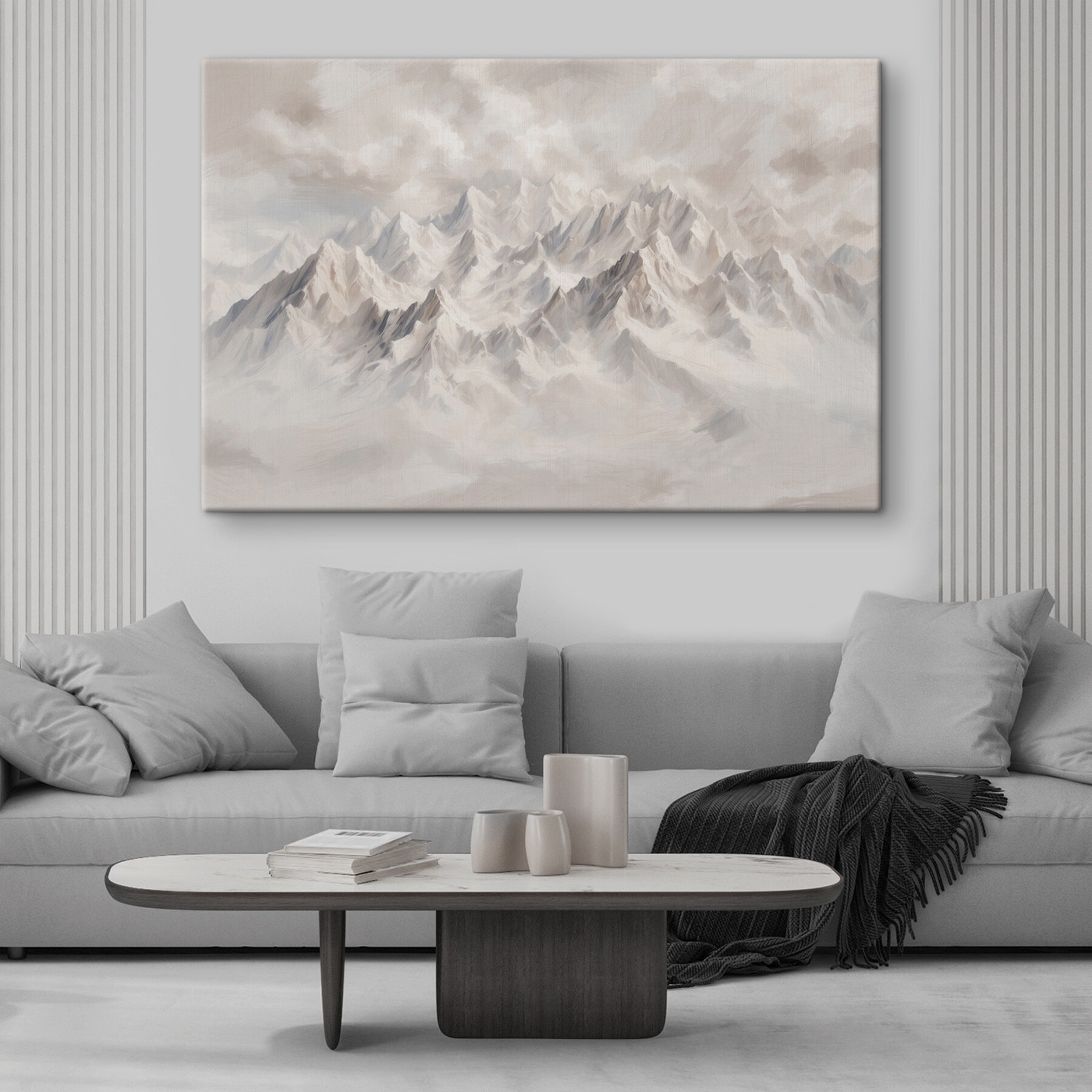 Transformeer elke kamer met deze prachtige “Canvas Schilderijen Mountain Range with Clouds”. Het is alsof je een stukje van het buitenleven in huis haalt, zonder de wandelschoenen en insectenspray. Stel je voor dat je op een kille avond met een warm drankje in de hand naar die majestueuze bergtoppen staart die baden in zachte wolken. Het zachte kleurenpalet voegt een rustige sfeer toe – perfect voor een serene ontsnapping na een lange dag. Bovendien is het een geweldige gespreksstarter. Vrienden zullen er zeker naar vragen! Het past mooi in elke ruimte, waardoor muren levendig aanvoelen. Wie wist dat wolken zo stijlvol konden zijn?