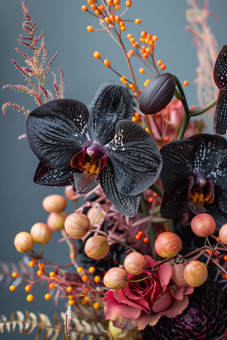 Stel je voor dat je een kamer binnenstapt en begroet wordt door de levendige elegantie van deze canvasprint. “Exquisite Orchids with Vibrant Autumn Hues is niet alleen een naam, het is een ervaring. Het diepe, dramatische zwart van de orchideeën steekt prachtig af tegen de vurige herfstkleuren. Het is alsof de natuur zelf zegt: “Hé, let op!”. Perfect voor de sfeer in elke ruimte. Of je nu koffie drinkt of vrienden ontvangt, deze kunst fluistert rust uit en steelt de sfeer. Het is meer dan decor; het is een gespreksstarter, een sfeerbooster, een stukje natuur in je huis.