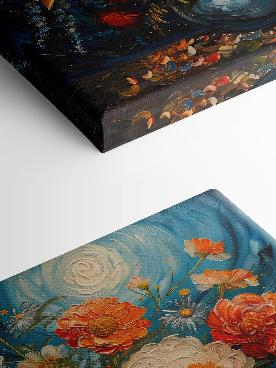 Stel je voor dat je je woonkamer binnenloopt en daar zijn ze – deze levendige bloemen in een vaas, gevangen op canvas! De kleuren knallen als een brutale knipoog op een grijze dag. Het is alsof ze verhalen fluisteren over warme zomeravonden en geheime tuinen, daar aan je muur. Perfect voor iedereen die schoonheid ziet in een beetje georganiseerde chaos. Dit stuk voelt als een warme knuffel – het vult elke ruimte met levendigheid en charme. Bloemen die nooit verwelken, een tijdloze conversatie starter. Wie wil dat nou niet?