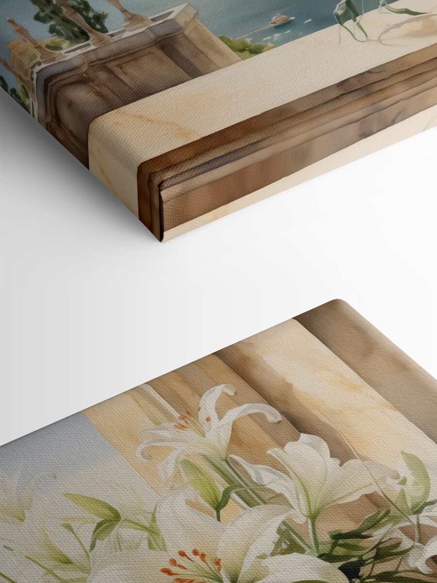 Stel je voor dat je een kamer binnenloopt en begroet wordt door dit canvas schilderij van een charmante pot vol witte bloemen. Het is als een frisse wind, kalmerend en toch levendig. Stel het je voor: ochtendkoffie in de hand, zonlicht dat danst op de bloemblaadjes en alles voelt opeens een beetje serener.