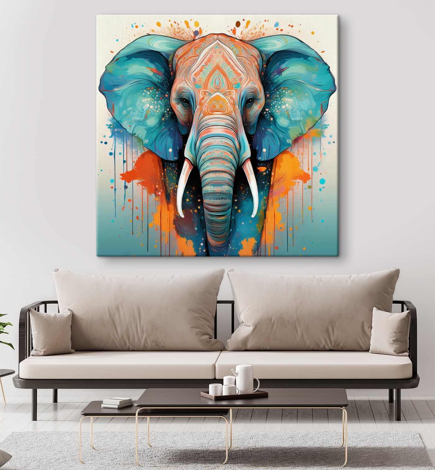 Stel je een olifant voor in een bonte kleurenpracht – dat is precies wat dit canvas aan je muren geeft. Levendige blauwe en oranje tinten dansen over het oppervlak en geven elke kamer een speelse en toch verfijnde uitstraling. Perfect voor dierenliefhebbers of iedereen die van creativiteit houdt. Stel je voor: gasten komen binnen en er wordt even gepauzeerd. Misschien zelfs een dubbele blik. De olifant, met zijn grillige kleuren, steelt een beetje de show. Het is een stuk dat ‘leuk’ fluistert en tegelijkertijd roept ‘kijk mij nou! Een gegarandeerde gespreksstarter, daar aan je muur.