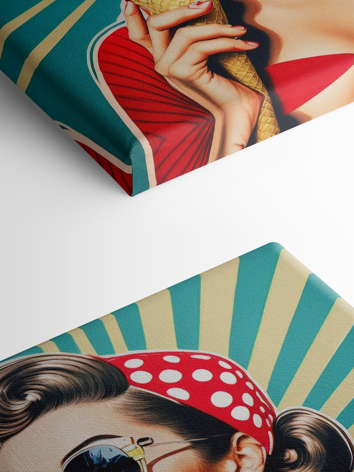 Hier is een doek dat eigenlijk de zomer in een momentopname is. “Woman Holding an Ice Cream Cone is niet zomaar een kunstwerk, het is een hele vibe! Stel je dit voor in je woonkamer, waardoor de ruimte meteen aanvoelt als een coole, nostalgische dag op de kermis. Met een retro zonnebril en die te-coole-voor-school look, schreeuwt het speelse charme uit. Het is alsof ze zegt: “Ja, dit heb ik.”