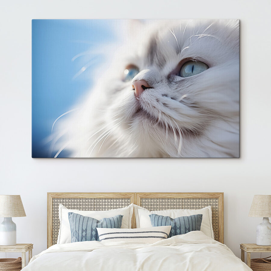 “Dreamy Gaze Toward the Sky” is alsof je een beetje magie in huis haalt. Op deze canvasprint zie je een pluizige kat naar de hemel staren, met snorharen klaar voor avontuur. Het is perfect voor dierenliefhebbers of iedereen die stiekem een dagdromer in hart en nieren is. Stel je deze katachtige muze voor, neergestreken op je muur, inspirerend voor gedachten aan knuffels en nieuwsgierigheid. Je vindt hier een vleugje eigenzinnigheid – dit kunstwerk herinnert je er misschien aan om even de tijd te nemen, omhoog te kijken en je af te vragen wat er is. Een kleine herinnering om te ademen en te dromen.
