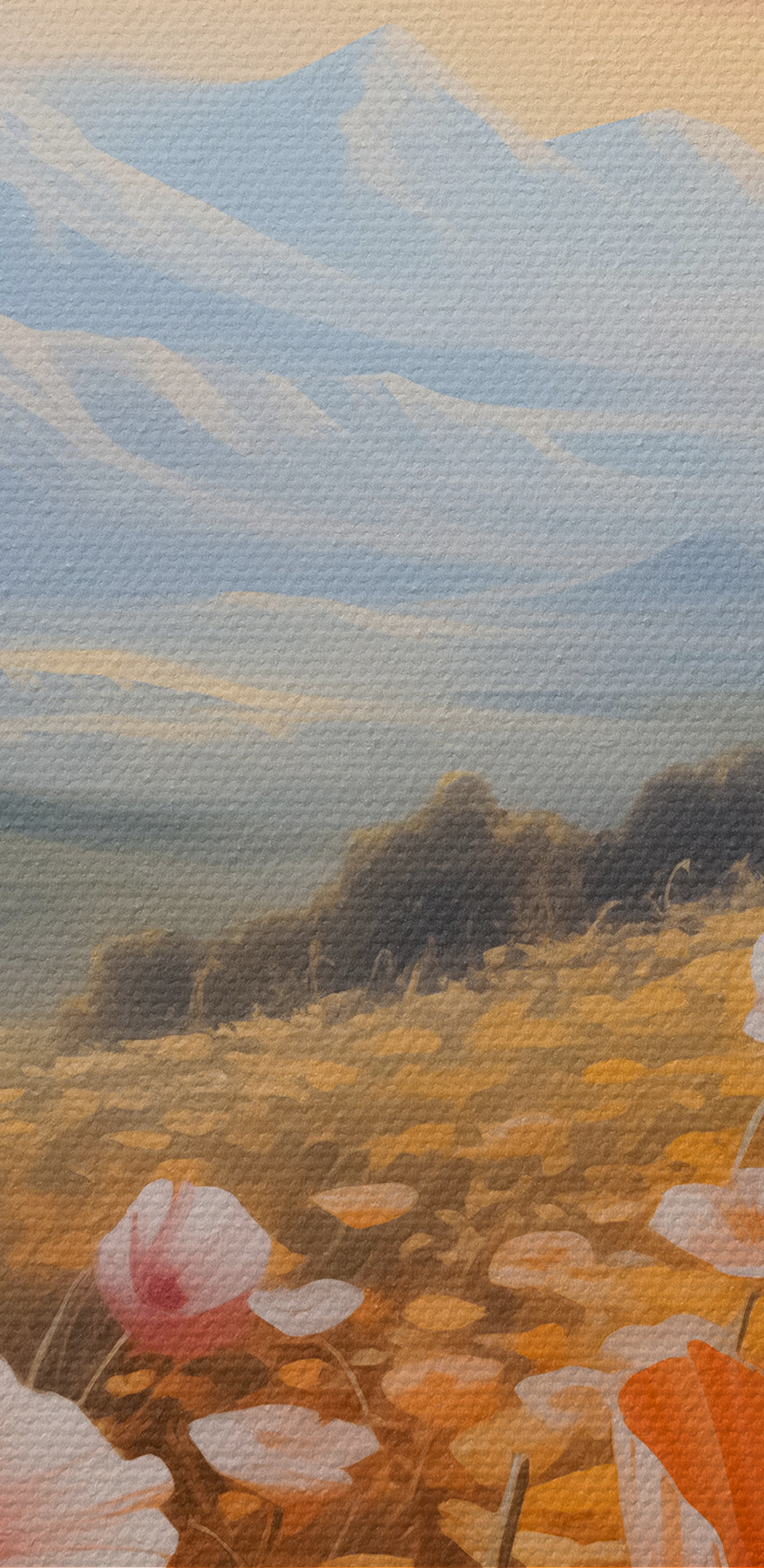 Stel je voor dat je wakker wordt met een veld vol levendige bloemen die zachtjes wiegen in de wind. Deze canvasprint – een dromerig landschap van bloeiende kleuren met majestueuze bergen op de achtergrond – brengt een stukje paradijs in je kamer. Het is alsof je een zonnige weide binnenstapt, waar de tijd even stilstaat en je de frisse bloei bijna kunt ruiken, vermengd met een vleugje berglucht. Een rustgevend toevluchtsoord aan je muur, perfect om een glimlach op een druilerige dag of een levendig gesprek bij de koffie te stimuleren. Hier bloeit het geluk!