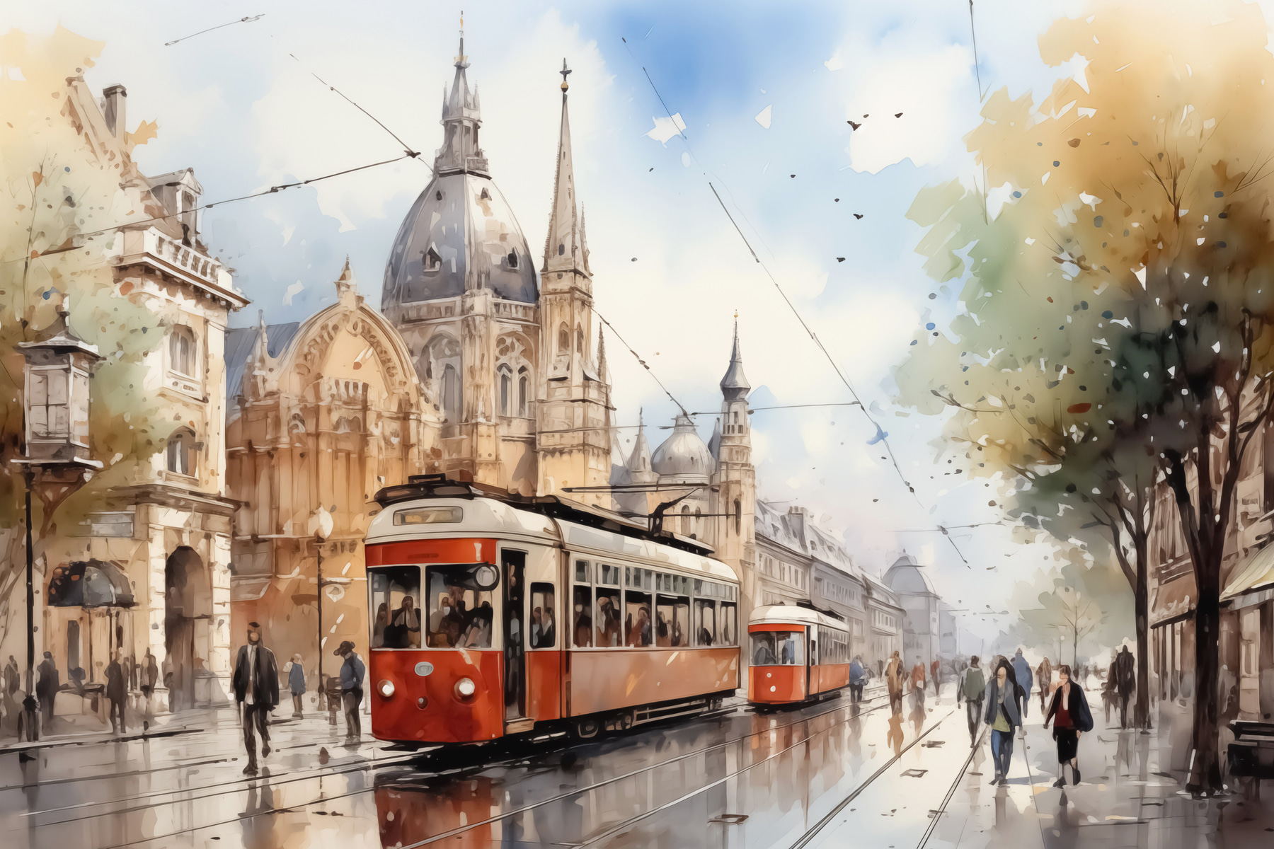 Stap in de charme van bruisende straten met de “Trolley on a Street” canvasprint. Het is net een aquareldroom die tot leven komt, waarin de elegantie van de architectuur van weleer wordt vermengd met de alledaagse sfeer van het stadsleven. Je weet wel, het soort tafereel dat je doet dagdromen over koffie drinken in een klein café terwijl je de wereld voorbij ziet gaan. Dit stuk brengt een vleugje nostalgie in elke hoek, wekt nieuwsgierigheid op en fluistert reisverhalen. Perfect voor iedereen met een zwak voor stedelijke avonturen en artistieke flair!
