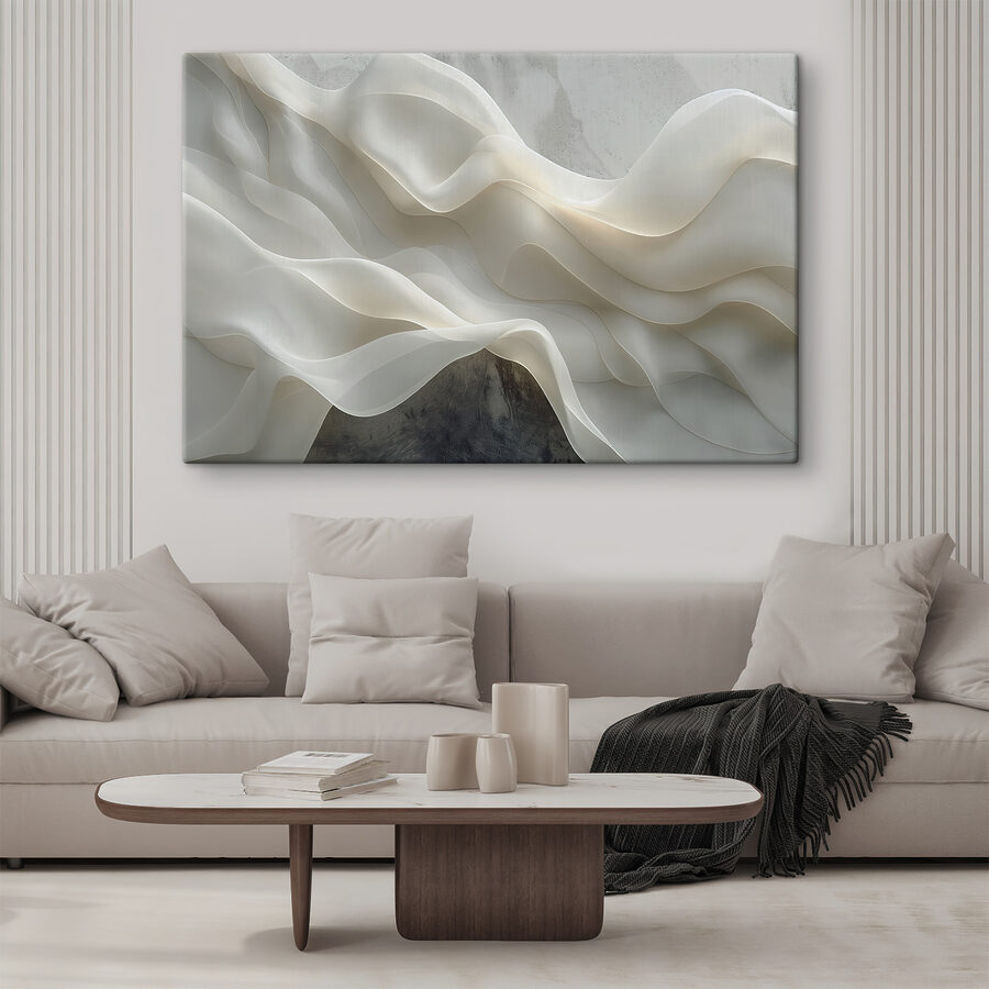 Stel je voor dat je een kamer binnenstapt en begroet wordt door de sierlijke dans van stoffen golven – dit canvas stuk vangt die serene beweging perfect. Het is alsof er een zacht briesje op je muur staat dat elegantie fluistert. Perfect voor de dagen dat het leven een beetje te chaotisch aanvoelt, biedt dit kunstwerk een rustgevende ontsnapping. Het licht- en schaduwspel creëert diepte, bijna alsof de stof je wil aanraken. Het is een heerlijke mix van eenvoud en stijl – een moeiteloze gespreksstarter die aanvoelt als een warme knuffel voor je ogen.