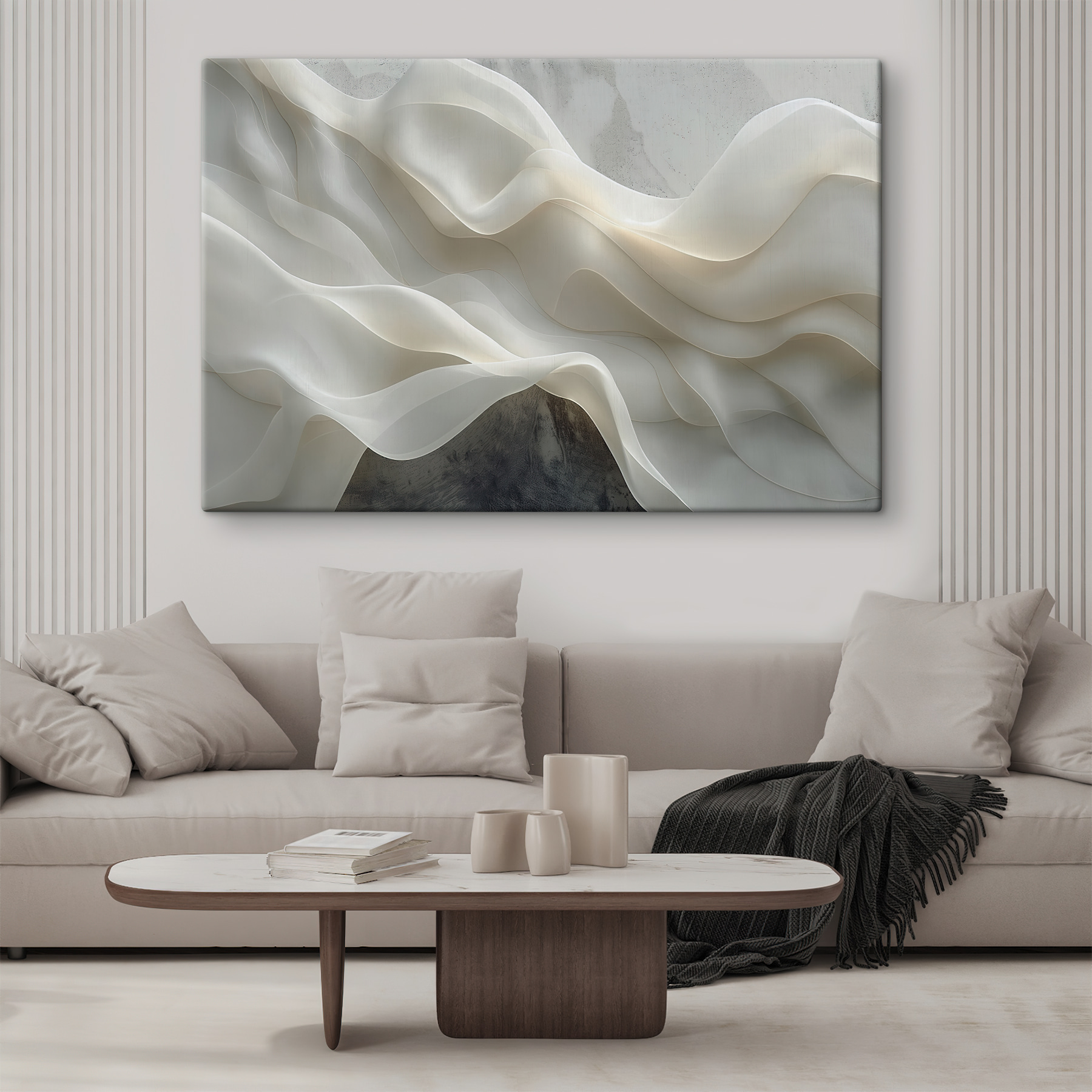 Stel je voor dat je een kamer binnenstapt en begroet wordt door de sierlijke dans van stoffen golven – dit canvas stuk vangt die serene beweging perfect. Het is alsof er een zacht briesje op je muur staat dat elegantie fluistert. Perfect voor de dagen dat het leven een beetje te chaotisch aanvoelt, biedt dit kunstwerk een rustgevende ontsnapping. Het licht- en schaduwspel creëert diepte, bijna alsof de stof je wil aanraken. Het is een heerlijke mix van eenvoud en stijl – een moeiteloze gespreksstarter die aanvoelt als een warme knuffel voor je ogen.