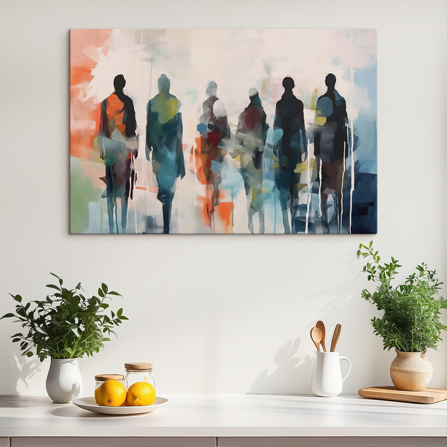 Dit canvas kunstwerk, “Wandelende groep mensen”, is als een stukje leven gevangen in een aquareldroom. Heb je ooit gemerkt hoe een eenvoudige wandeling een beeld van gezelschap kan schetsen? Het is een abstracte viering van beweging en saamhorigheid, verpakt in een warme, artistieke omhelzing. Stel je voor dat dit in je woonkamer hangt – een scheut creativiteit die gesprekken op gang brengt. Vrienden komen misschien even binnen en zeggen: “Wow, dat is intrigerend!”. Het heeft die magische mix van mysterie en vertrouwdheid. Perfect voor iedereen met een zwak voor unieke decoravonturen!