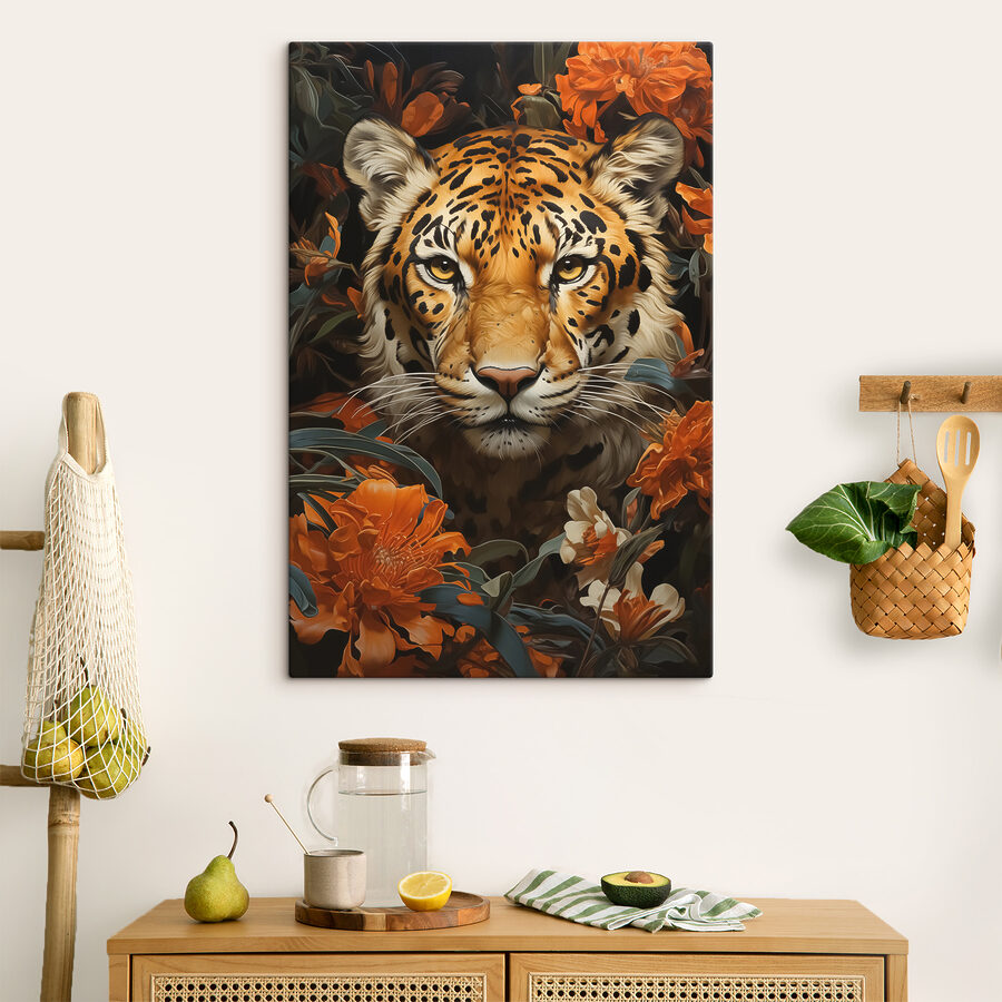 Stap in een levendige jungle met de “Tijger op canvas tussen weelderige oranje bloesems”. Dit prachtige stuk brengt een gedurfde tijger in het middelpunt, fel omlijst door uitbarstingen van prachtige oranje bloemen. Stel je dit eens voor in je woonkamer – het is alsof je een wilde metgezel hebt die klaar staat om je dag te beginnen! De kleuren zijn zo levendig dat ze bijna bruisen van energie, wat uitnodigt tot glimlachen van gasten en felle afgunst van vrienden. Perfect om een vleugje persoonlijkheid toe te voegen, het is niet alleen decor; het is een gespreksstarter en een dagelijkse inspiratie. Wie zou zich niet wat avontuurlijker voelen met deze schoonheid aan de muur?