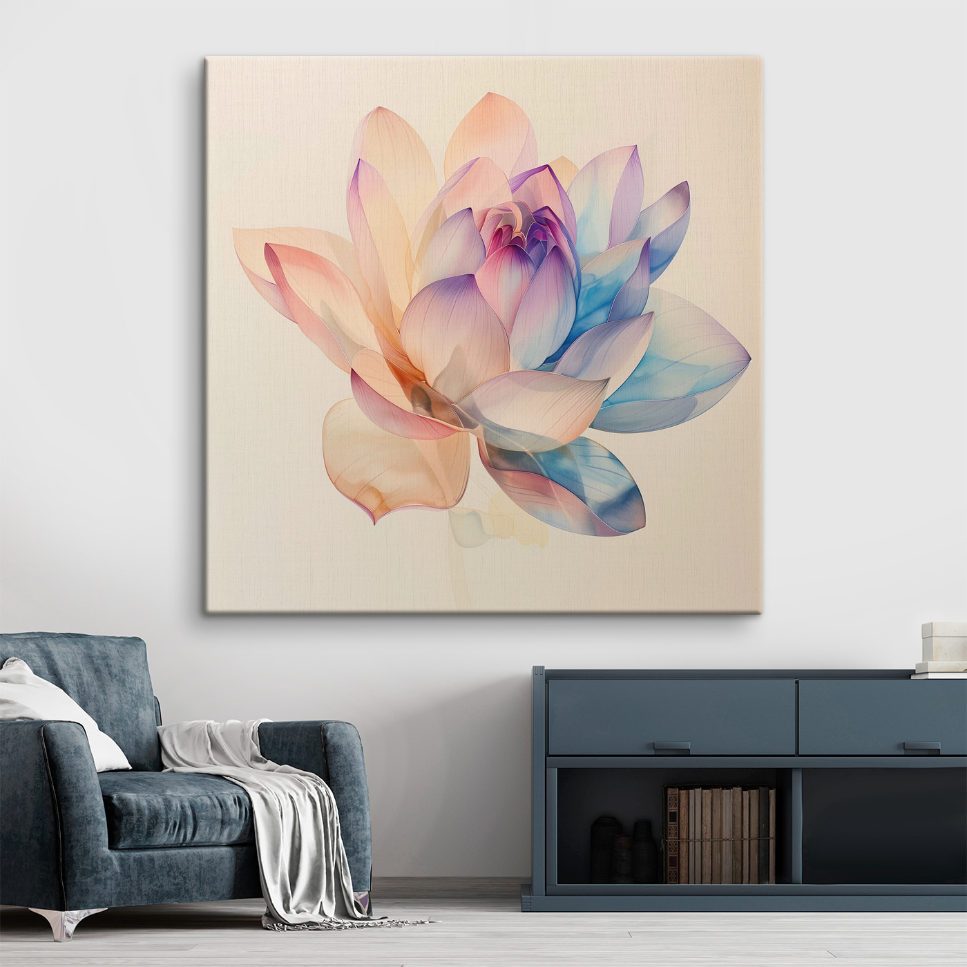 Stel je voor dat je door een dromerige tuin wandelt, en plotseling is daar een uitbarsting van kleur die je even stil doet staan. Dat is “Stralende bloesem in pasteltinten” aan je muur. Het is als een zachte fluistering van de lente, het hele jaar door. Je zou uren kunnen genieten van die zachte aquareltinten, waarbij elk bloemblaadje een dans van licht en kleur is. Perfect voor als je wilt dat je ruimte levendig maar rustig aanvoelt, als een knus hoekje waar de tijd even stilstaat. Geweldig om een gesprek mee te beginnen-“Waar heb je die geweldige print vandaan?”. Gegarandeerd een veelgestelde vraag!