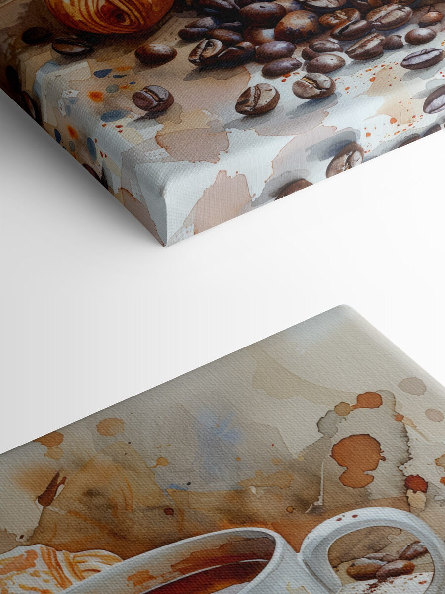 Heb je wel eens het gevoel dat je muur een opkikkertje kan gebruiken? Maak dan kennis met deze aquarel canvasprint, waarop een kop koffie en een perfect gevlokte croissant de show stelen. Het is alsof je het gezellige hoekje van je favoriete café vastlegt, zonder het lawaai. Stel je voor dat het warme aroma door je kamer zweeft! Perfect voor keukens of eetkamers – eigenlijk overal waar je dagdroomt over een ontbijt in Parijs. Of je nu van koffie houdt of gewoon van lekker gebak, deze kunst voegt een vleugje heerlijke charme toe aan je dag.