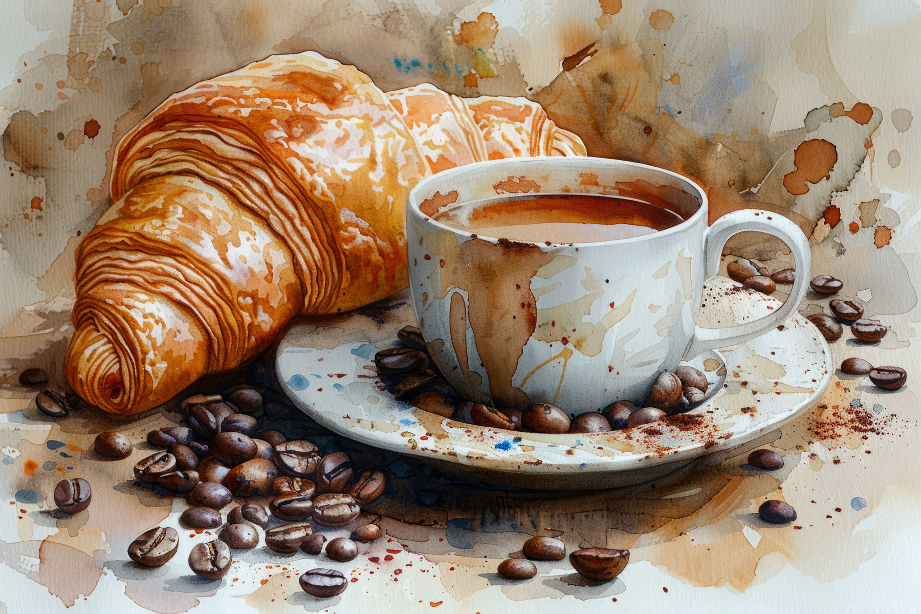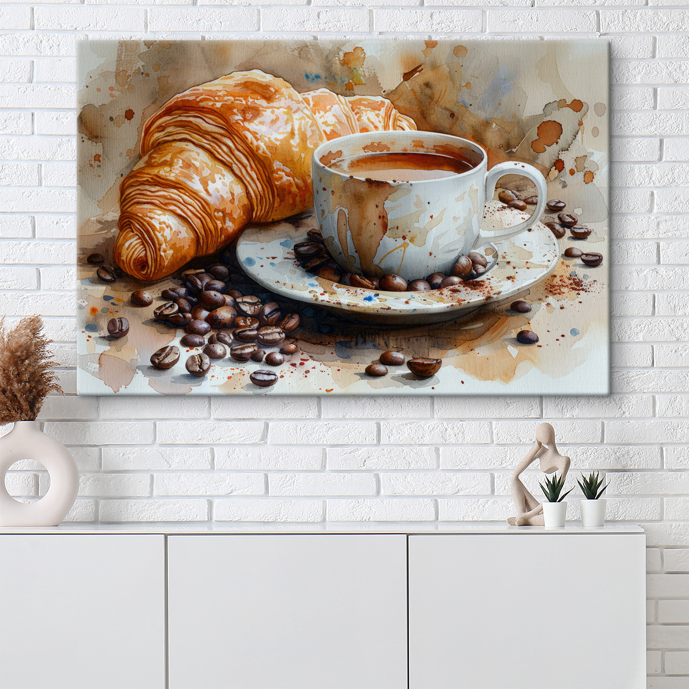 Heb je wel eens het gevoel dat je muur een opkikkertje kan gebruiken? Maak dan kennis met deze aquarel canvasprint, waarop een kop koffie en een perfect gevlokte croissant de show stelen. Het is alsof je het gezellige hoekje van je favoriete café vastlegt, zonder het lawaai. Stel je voor dat het warme aroma door je kamer zweeft! Perfect voor keukens of eetkamers – eigenlijk overal waar je dagdroomt over een ontbijt in Parijs. Of je nu van koffie houdt of gewoon van lekker gebak, deze kunst voegt een vleugje heerlijke charme toe aan je dag.
