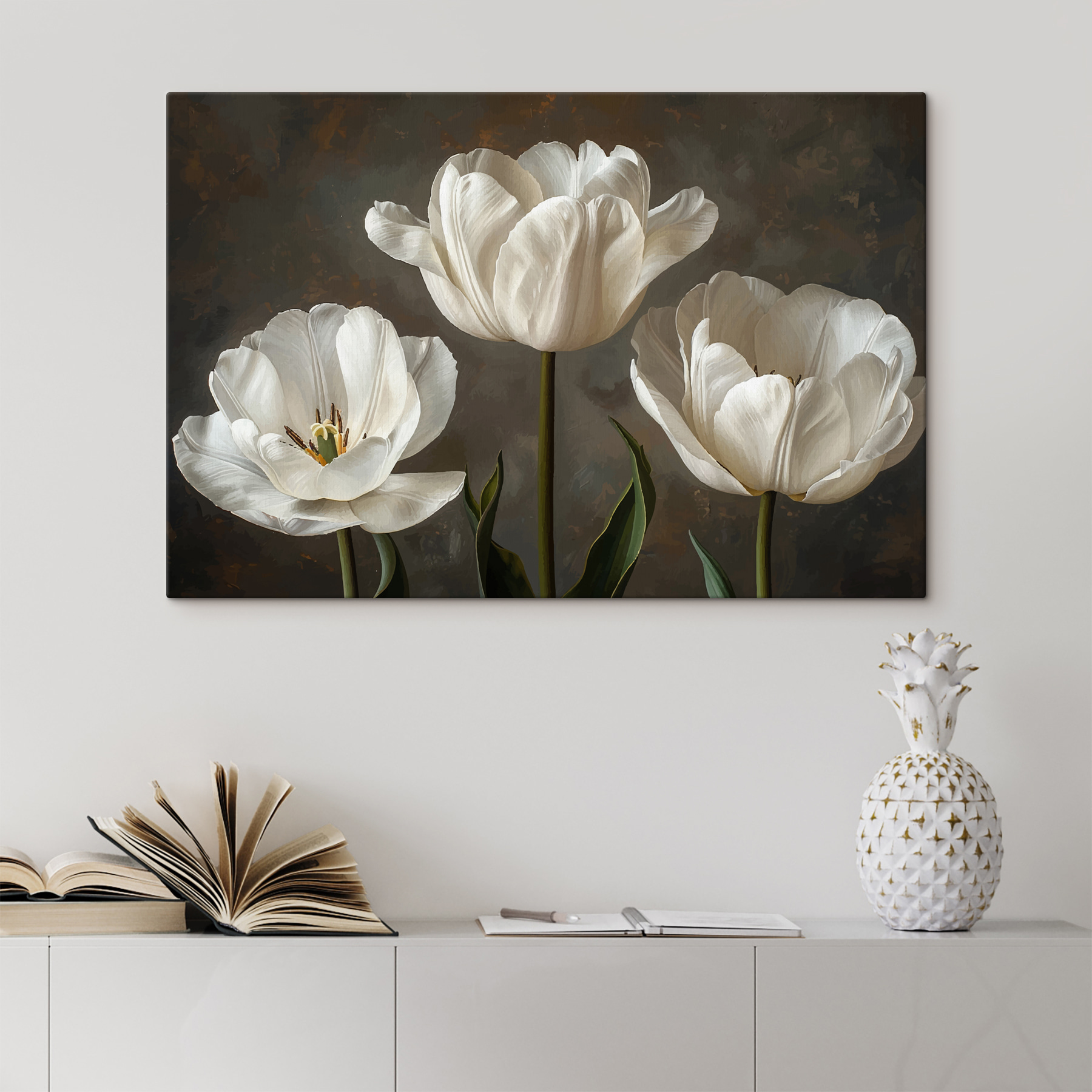 Stel je voor dat je een kamer binnenloopt en het gevoel hebt dat je in een vredige tuin bent – heel cool, toch? Deze canvasprint met een groep elegante witte bloemen doet precies dat. Het is niet zomaar kunst; het is een zacht gefluister van de natuur aan je muur. Perfect voor die druilerige dagen waarop je alleen maar frisse lucht nodig hebt zonder dat je planten nodig hebt (je hoeft ze geen water te geven!). Of het nu in een knus hoekje is of in een drukke woonkamer, deze bloemen bloeien met charme en rust en maken je ruimte meteen een stuk vrolijker.