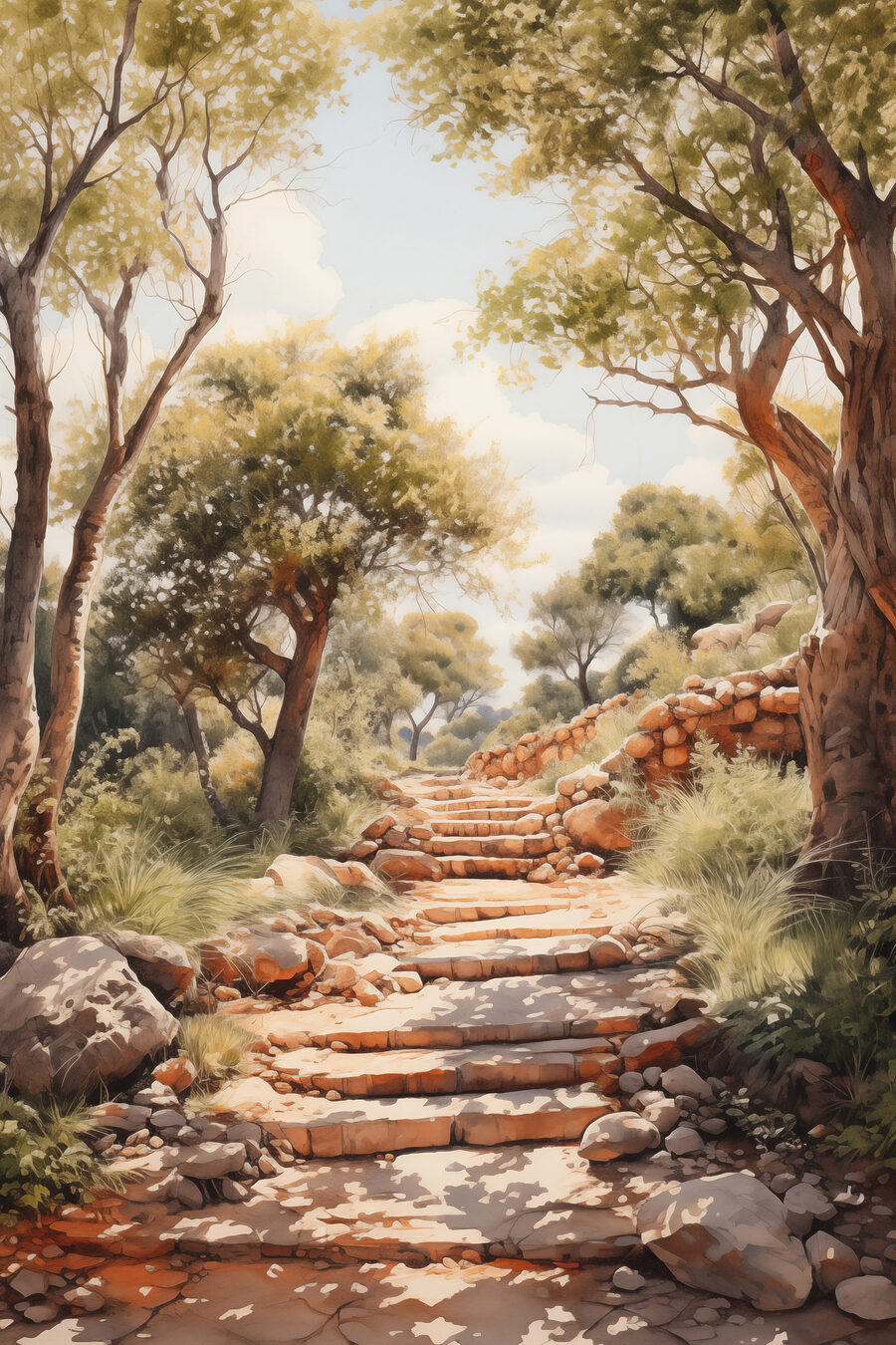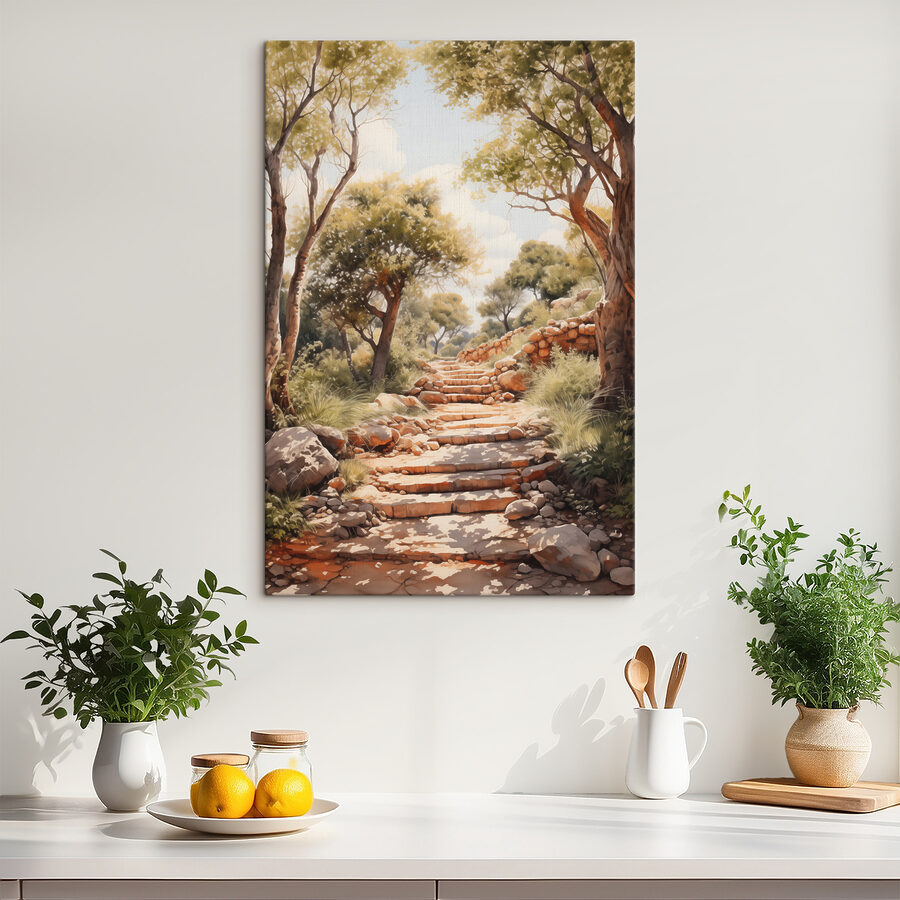 Stel je voor: een luie middag, zonlicht dat door de bomen schijnt, een zacht briesje dat met de bladeren speelt. Deze canvasprint, met een stenen trap die je uitnodigt om een bosdroom binnen te wandelen, heeft de gave om reislust op te wekken vanuit je woonkamer. Het is net een scène die rechtstreeks uit een sprookjesboek komt – wie had ooit gedacht dat een eenvoudige muur zo’n magie kon inhouden? Perfect voor natuurliefhebbers en dagdromers, het verandert je ruimte in een vredig toevluchtsoord. Krijg je zin om thee te drinken en met eekhoorns te praten?