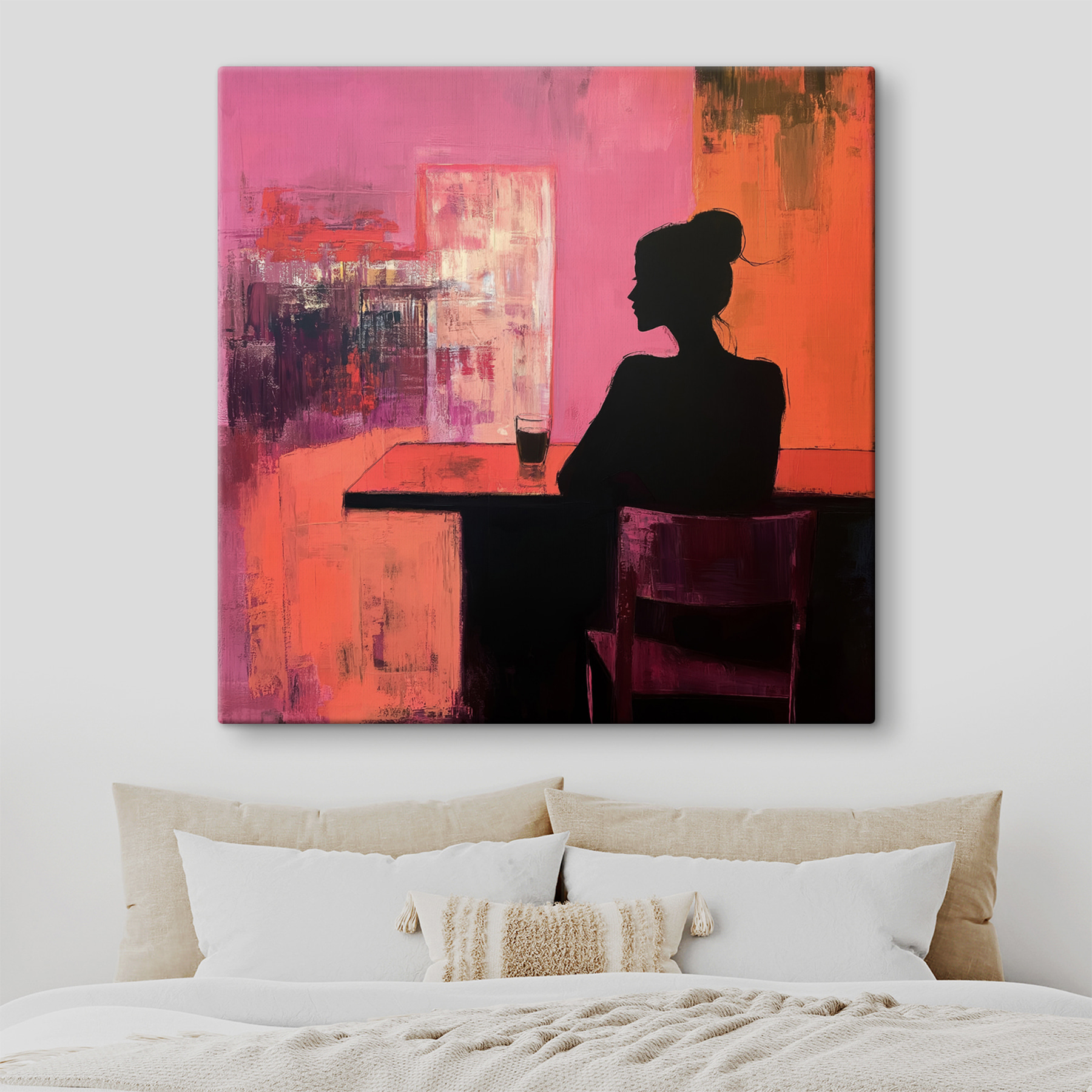 Stap in een wereld vol levendige kleuren met deze prachtige canvasprint. Het silhouet van een vrouw aan een tafel, in gedachten verzonken, nodigt uit tot dagdromen en gezellige momenten. Stel je haar voor, nippend aan een warm drankje, starend uit het raam terwijl de zonsondergang de lucht schildert. De vleugjes roze en oranje voegen een heerlijke energie toe aan elke kamer, waardoor deze levendig aanvoelt. Het is als een momentopname van alledaagse magie, perfect om gesprekken op gang te brengen of gewoon om een vleugje creativiteit aan je muur toe te voegen. Verander een saaie ruimte in iets inspirerends – stel je de sfeer voor die deze schoonheid met zich meebrengt!