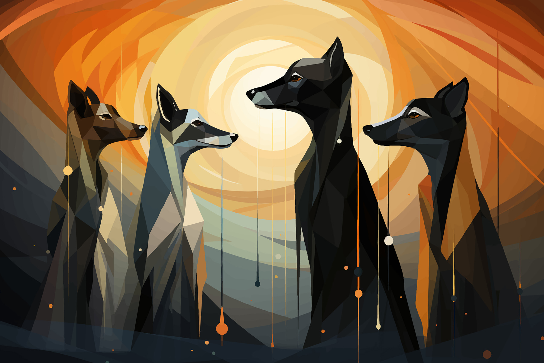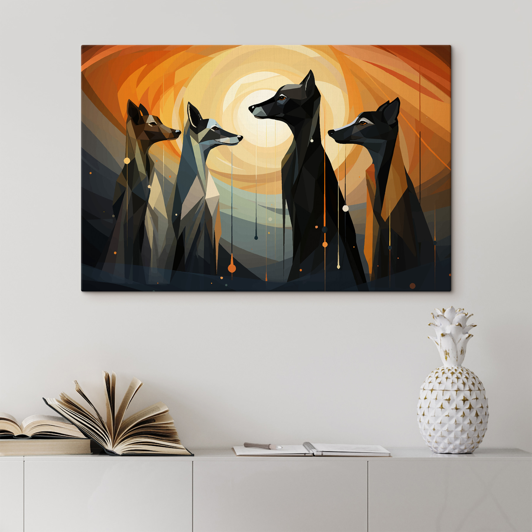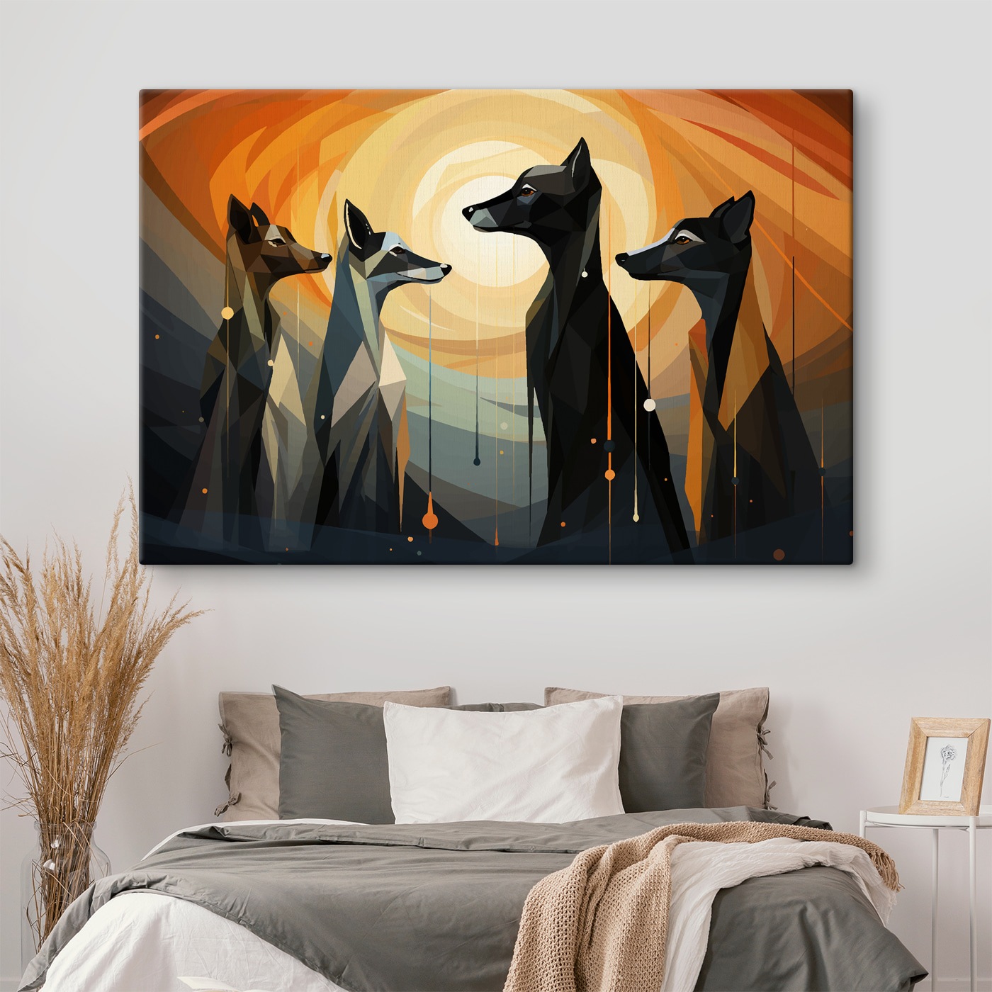 Stel je een eigenzinnige hondenontmoeting voor aan je muur! Deze canvasprint “Group of Dogs Looking at Each Other” is een combinatie van abstracte kunst en speelse charme. Perfect voor hondenliefhebbers of iedereen die houdt van een beetje eigenzinnigheid in hun ruimte. Het is net een stil gesprek tussen hondenvrienden dat nieuwsgierigheid opwekt telkens als je langsloopt. De warme, wervelende kleuren creëren een gezellige sfeer, waardoor elke kamer een beetje uitnodigender aanvoelt. Een stuk dat zeker complimenten zal krijgen (woordspeling bedoeld), misschien wordt het wel je favoriete onverwachte gast!