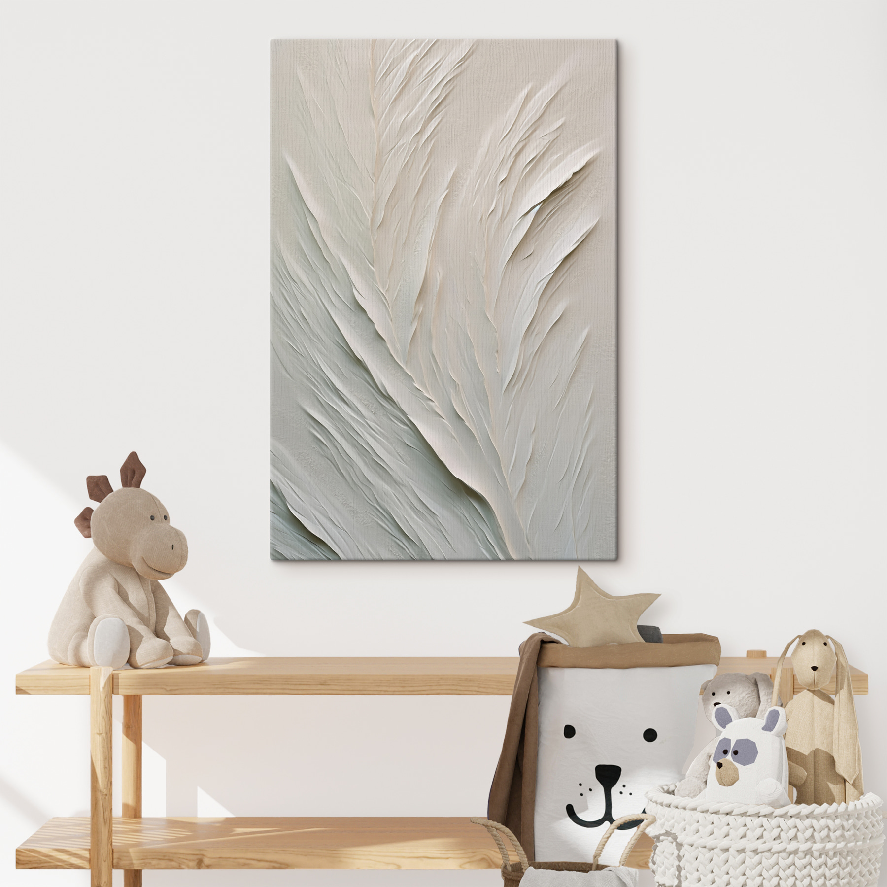 Ooit een canvas gezien dat aanvoelt als een zacht gefluister? “Afdrukken op canvas: Wit papier met een patroon” – het is als een elegante dans van lijnen en texturen. Stel je voor dat dit werk in je woonkamer hangt en deze rustig verandert in een serene plek om je terug te trekken. Vrienden zullen misschien even pauzeren en hun hoofd schuin houden om te proberen de subtiele allure te ontcijferen. Het is niet zomaar een decor, het is een sfeer, een stukje rust te midden van de chaos. Perfect voor die dagen waarop alles te veel is en je alleen een beetje rust aan je muur nodig hebt.