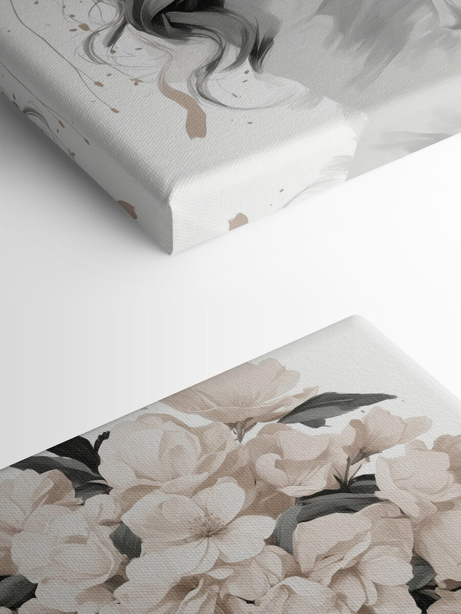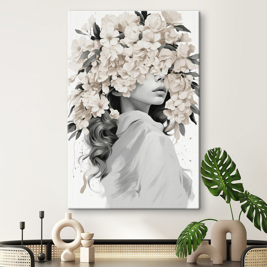 Stel je voor dat je een kamer binnenloopt en begroet wordt door dit prachtige canvas kunstwerk. Een vrouw versierd met een boeket bloemen, haar schoonheid zachtjes vermengend met de delicate bloemen. Het trekt je naar binnen en doet denken aan lentedagen en een zacht briesje. Perfect voor een gezellig hoekje of die lege muur die smeekt om een vleugje charme, dit stuk heeft een manier om elegantie te suggereren terwijl het moeiteloos koel blijft. Vrienden zullen stoppen en het bewonderen, misschien zelfs een beetje dagdromen. Het is net een gesprek met kunst – een mooi, bloemrijk gesprek dat de sfeer opfleurt en elke ruimte een beetje levendiger maakt. Een echte showstopper!