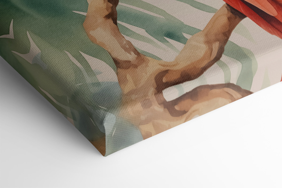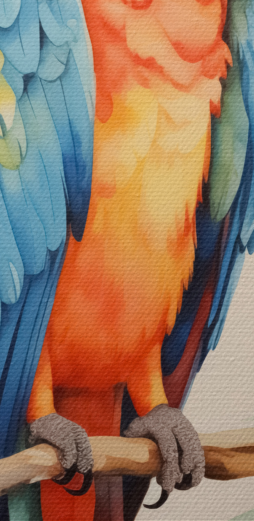 Stel je voor dat je je woonkamer binnenloopt en begroet wordt door een uitbarsting van levendige veren – dit kleurrijke vogeldoek is als een tropisch mini-uitstapje aan je muur. Het heeft de perfecte mix van levendige tinten en delicate aquareltextuur. Voegt een vleugje eigenzinnigheid en natuurlijke charme toe aan elke ruimte. Stel je voor dat je ‘s ochtends aan je koffie nipt en de vrolijke uitstraling voelt die het uitstraalt. Dit stuk, dat zeker tot praten aanzet, siert niet alleen je muur, maar bezingt ook je ziel.